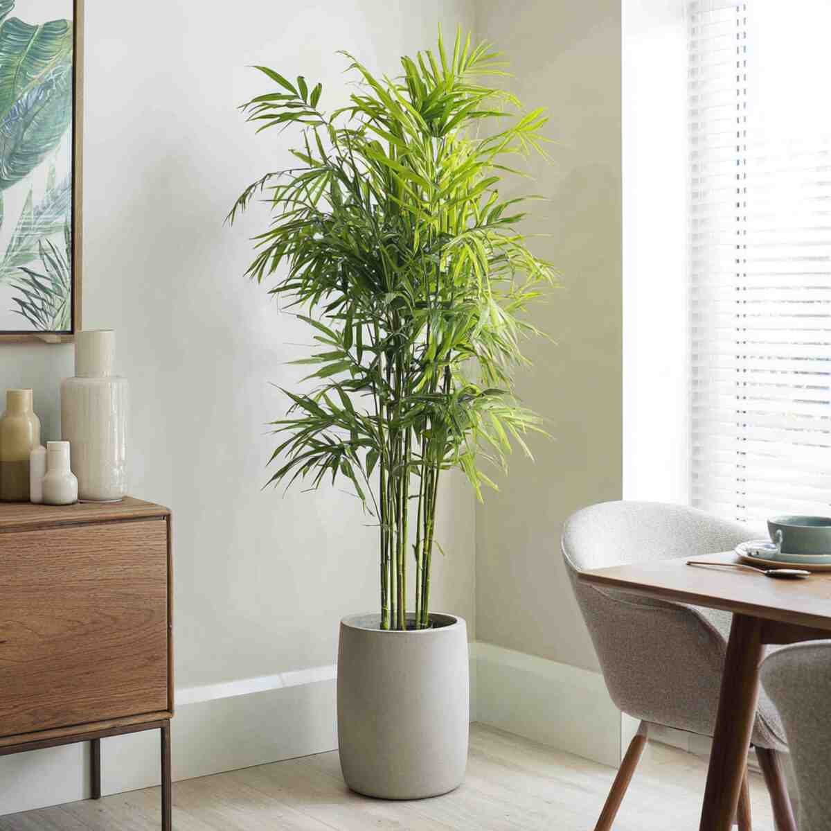 The bamboo palm is perfect for softening hard dining room corners with its feathery green fronds.