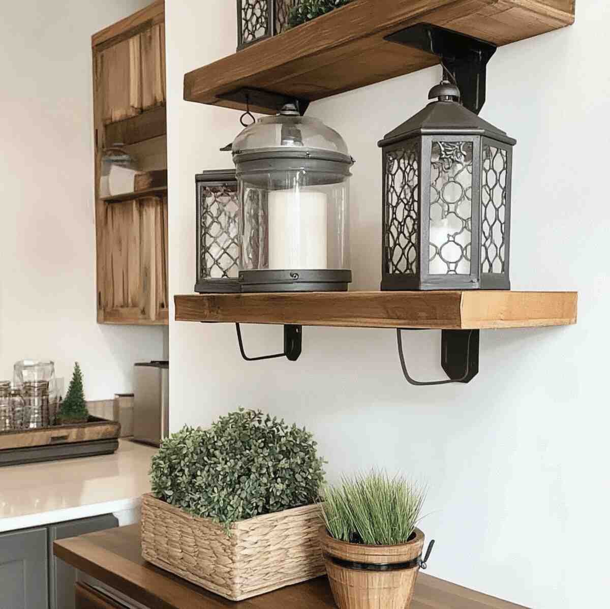 Metal lanterns bring a rustic or modern touch, depending on their finish, making them a great addition to Dining Room Floating Shelf Decor Ideas.