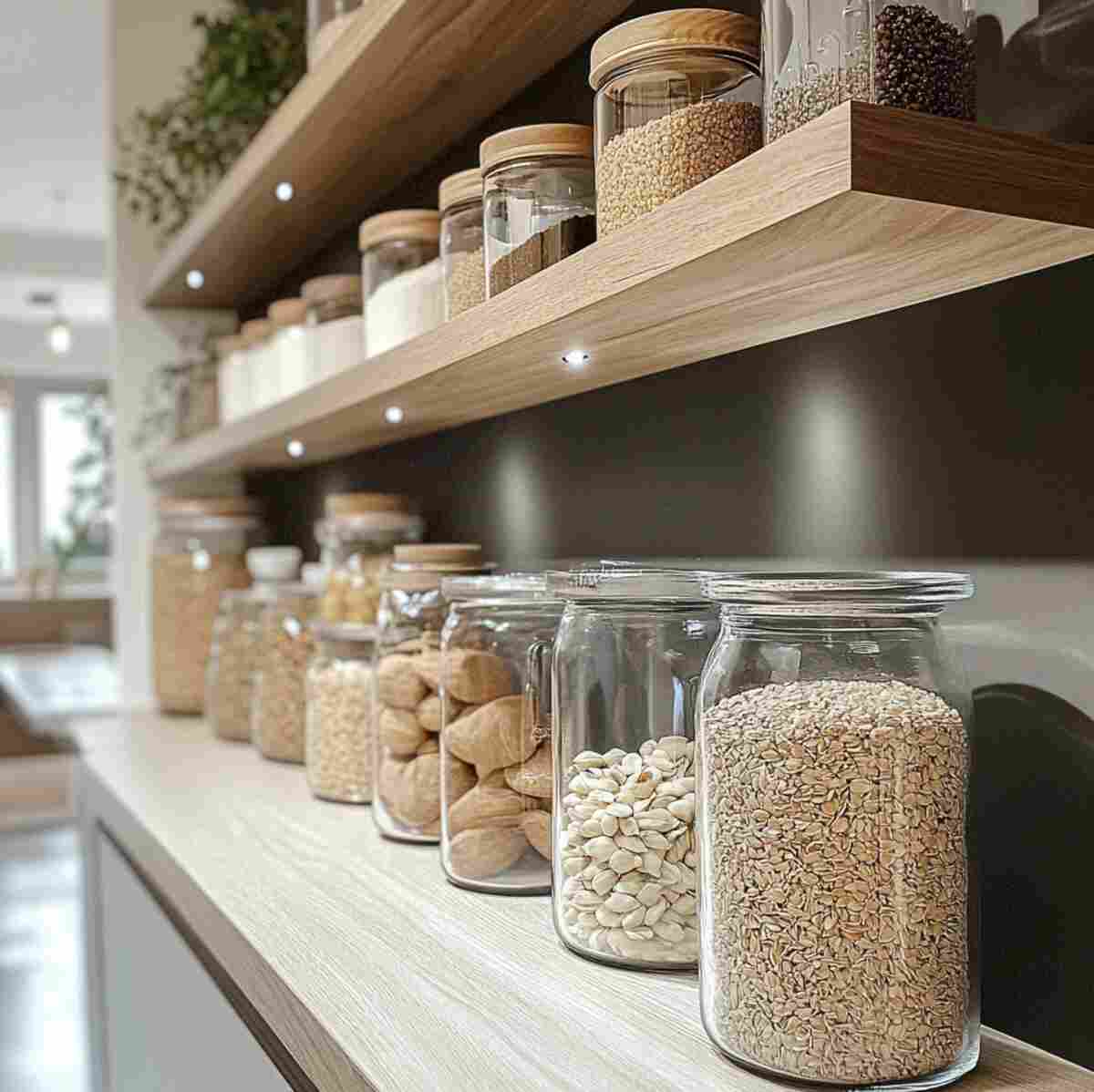 They create a sense of organized charm while showing off colorful grains, beans, or pasta. This simple display helps your dining area feel warm and homely.