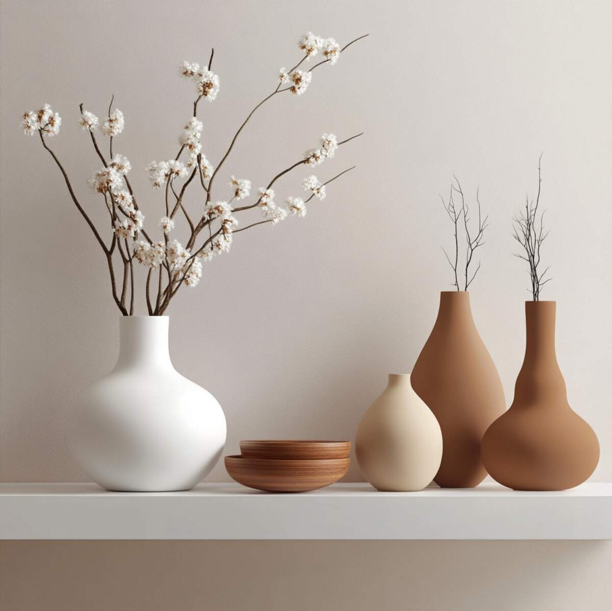 Their shapes and textures create visual interest without overwhelming the space. Using vases also allows you to rotate flowers or stems seasonally for fresh charm.