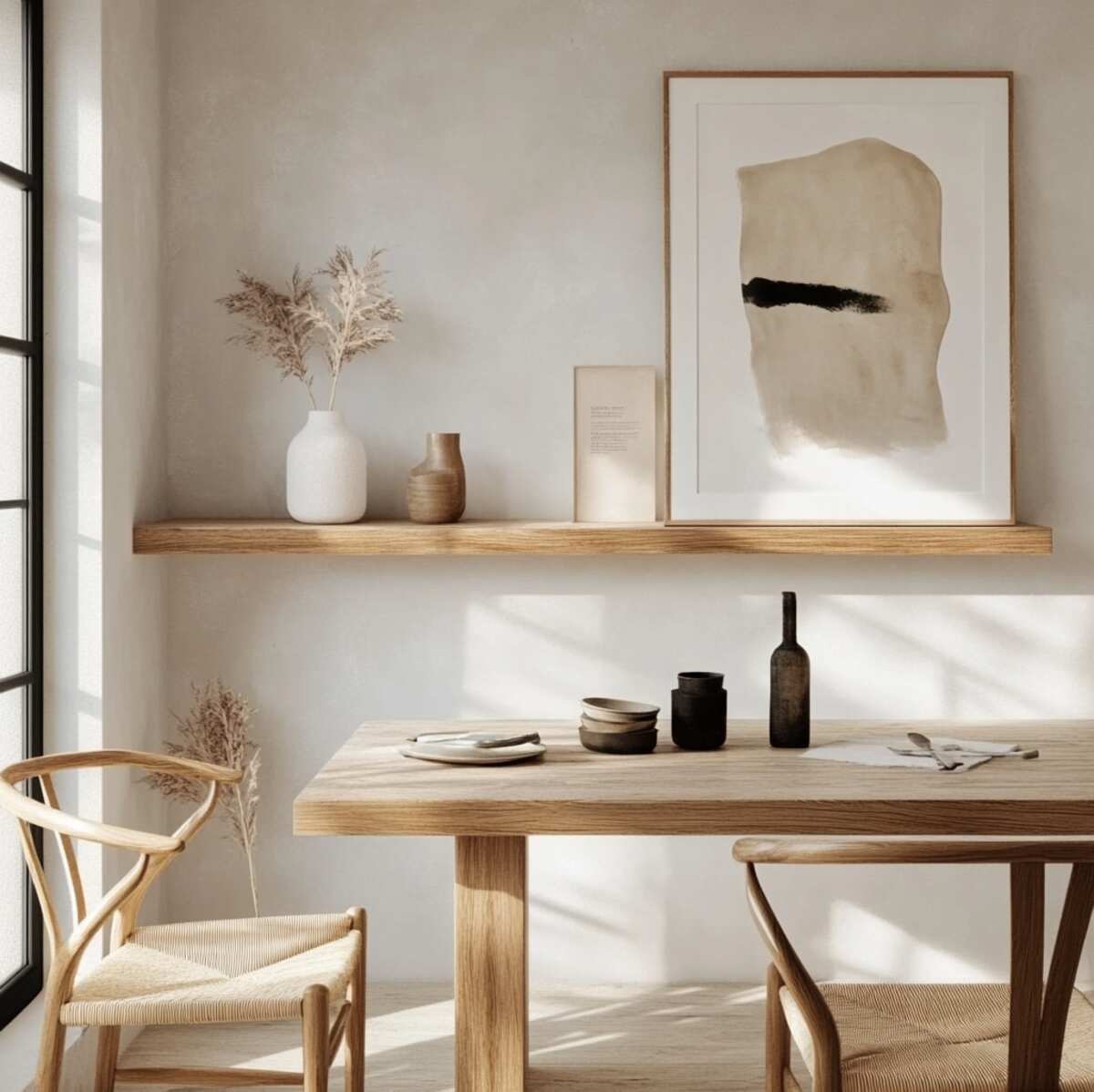 They create a gallery-like feel that makes the dining area more expressive. Choosing art that matches your style helps your shelves become a highlight of the room.