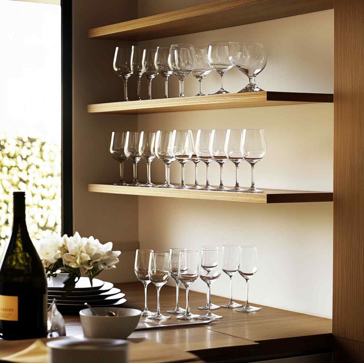 Displaying wine glasses is a classic way to make your Dining Room Floating Shelf Decor Ideas both stylish and practical.