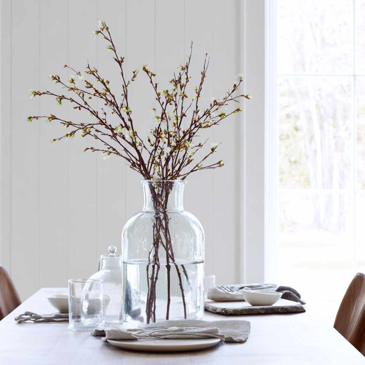 A clear vase with branches or stems is an elegant and understated choice for Dining Table Shelf Centerpiece Ideas.