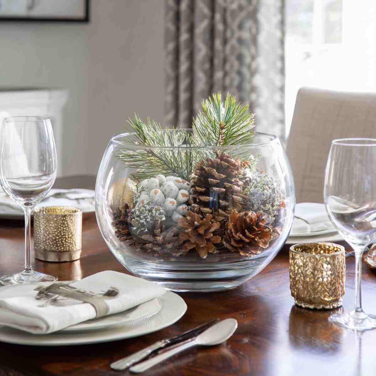 You can switch out contents like pinecones, ornaments, shells, or faux fruit to match the time of year.
