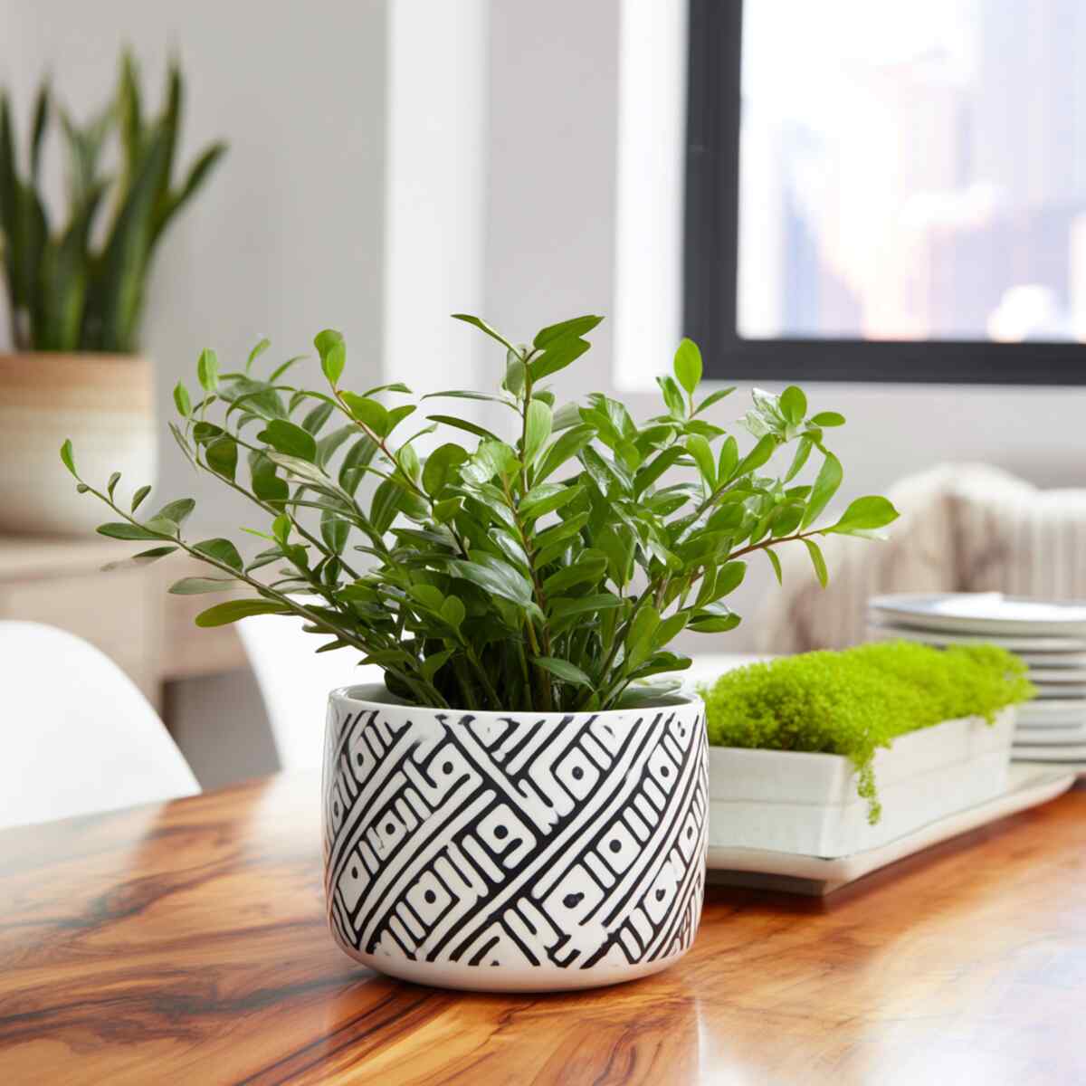 A potted indoor plant is one of the most refreshing Dining Table Shelf Centerpiece Ideas, bringing natural greenery into the dining space.