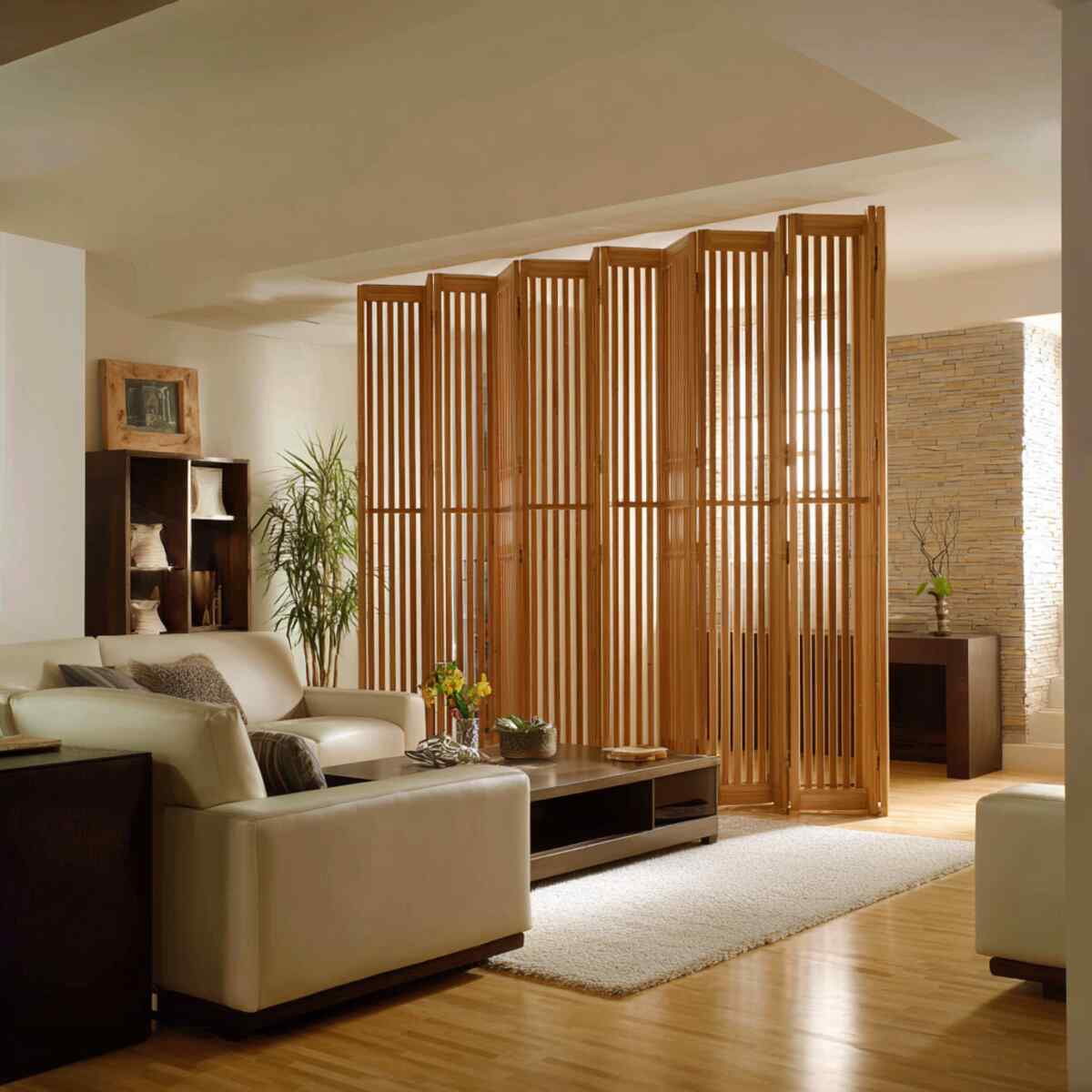 1. Wood Slat Divider Wall