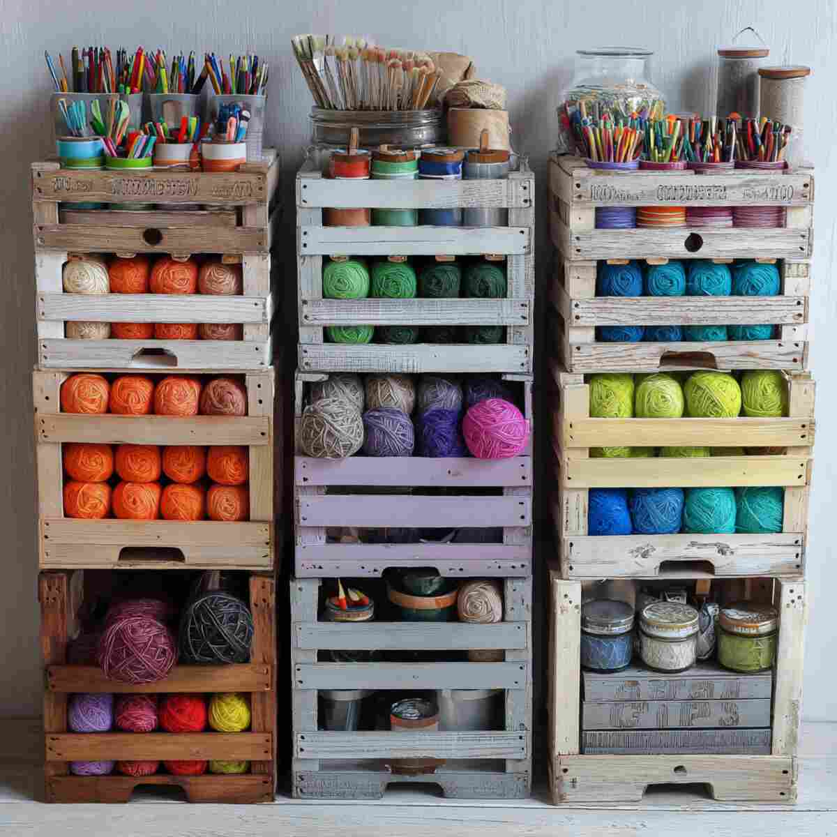 For craft enthusiasts, stackable crates are a perfect solution for organizing supplies like yarn, scissors, glue, and beads.