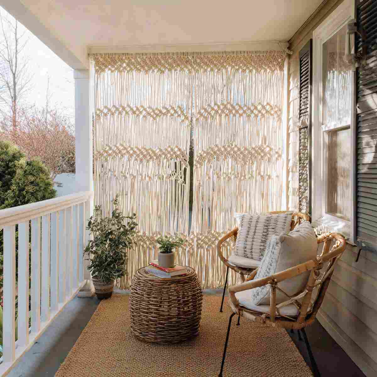 Rope or macramé designs are creative DIY Porch Privacy Screen Ideas that add texture and personality.