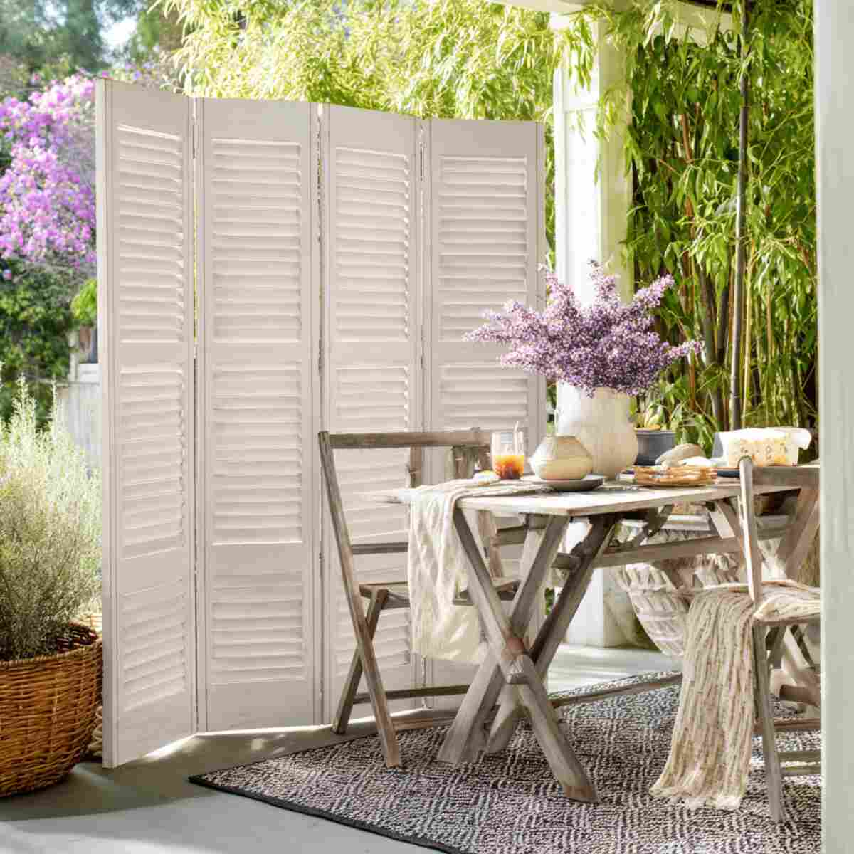 Shutter-style folding panels are flexible DIY Porch Privacy Screen Ideas that can be adjusted based on your needs.