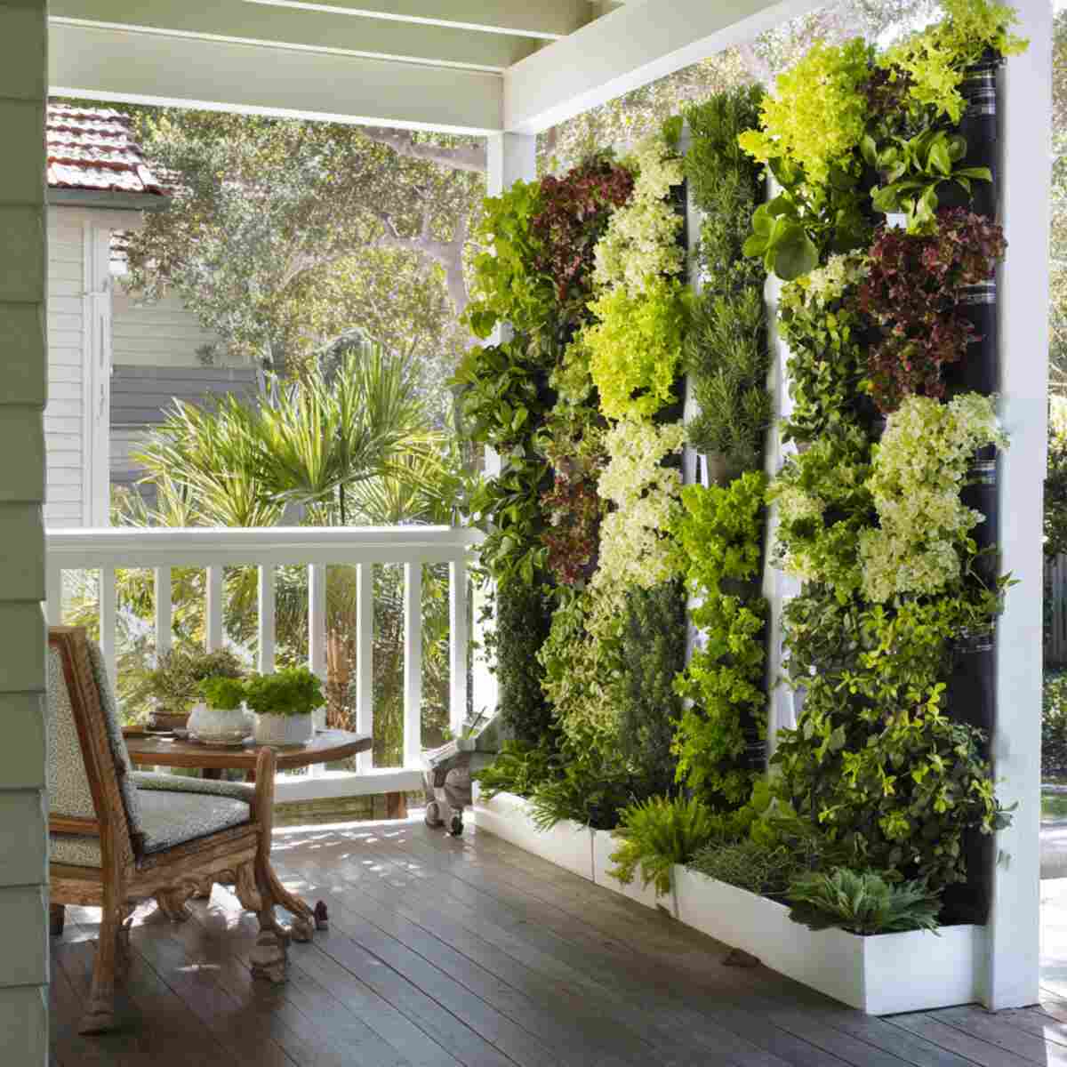 A vertical garden wall is a living version of DIY Porch Privacy Screen Ideas that maximizes small spaces. Plants create a thick visual barrier while improving air quality and aesthetics.