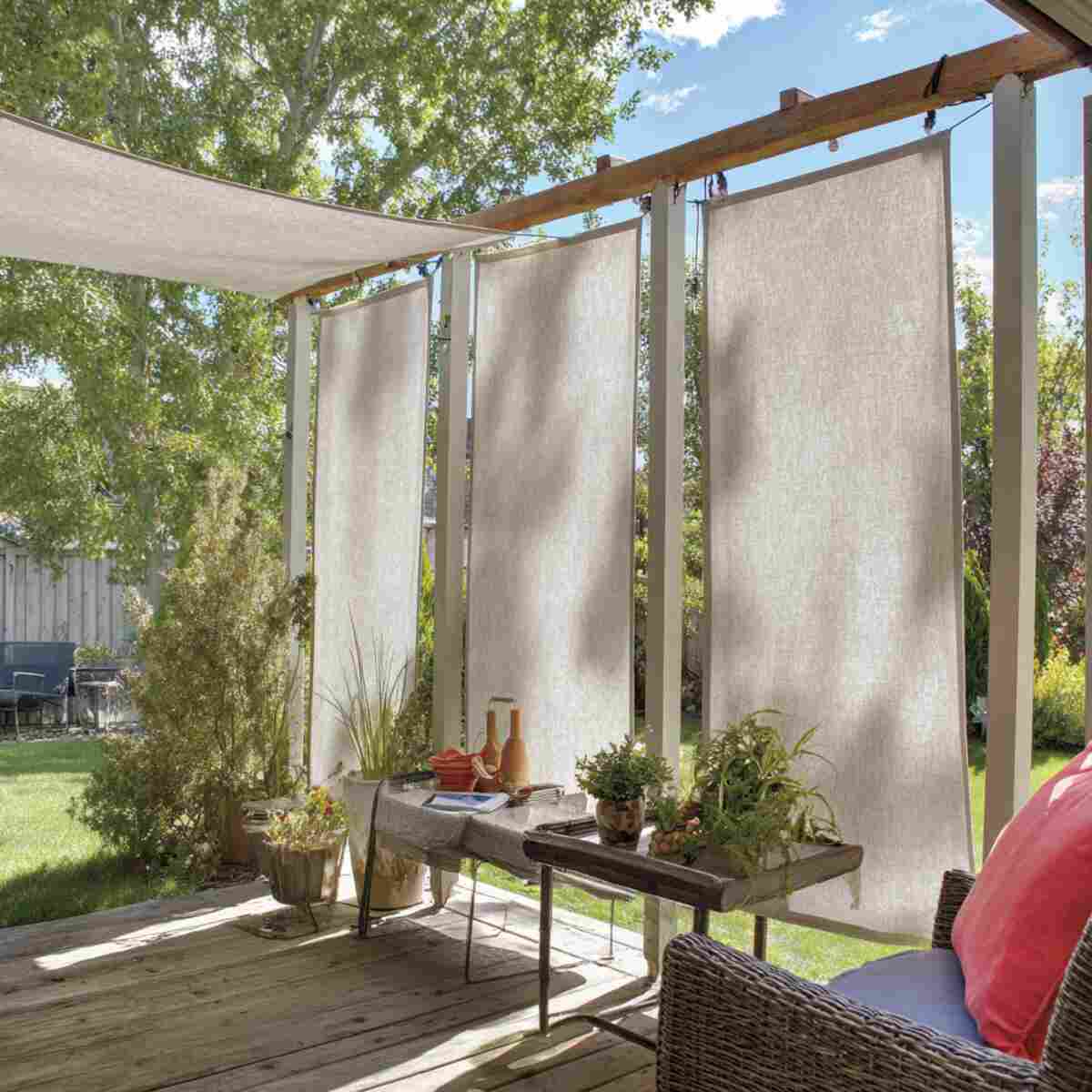 Fabric shade sail panels are flexible DIY Porch Privacy Screen Ideas that provide both shade and coverage.