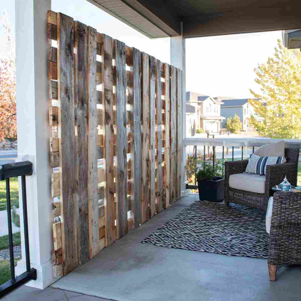 Using pallets is one of the most budget-friendly DIY Porch Privacy Screen Ideas available. Pallets can be sanded, painted, or stained to match your porch style while creating a solid visual barrier.