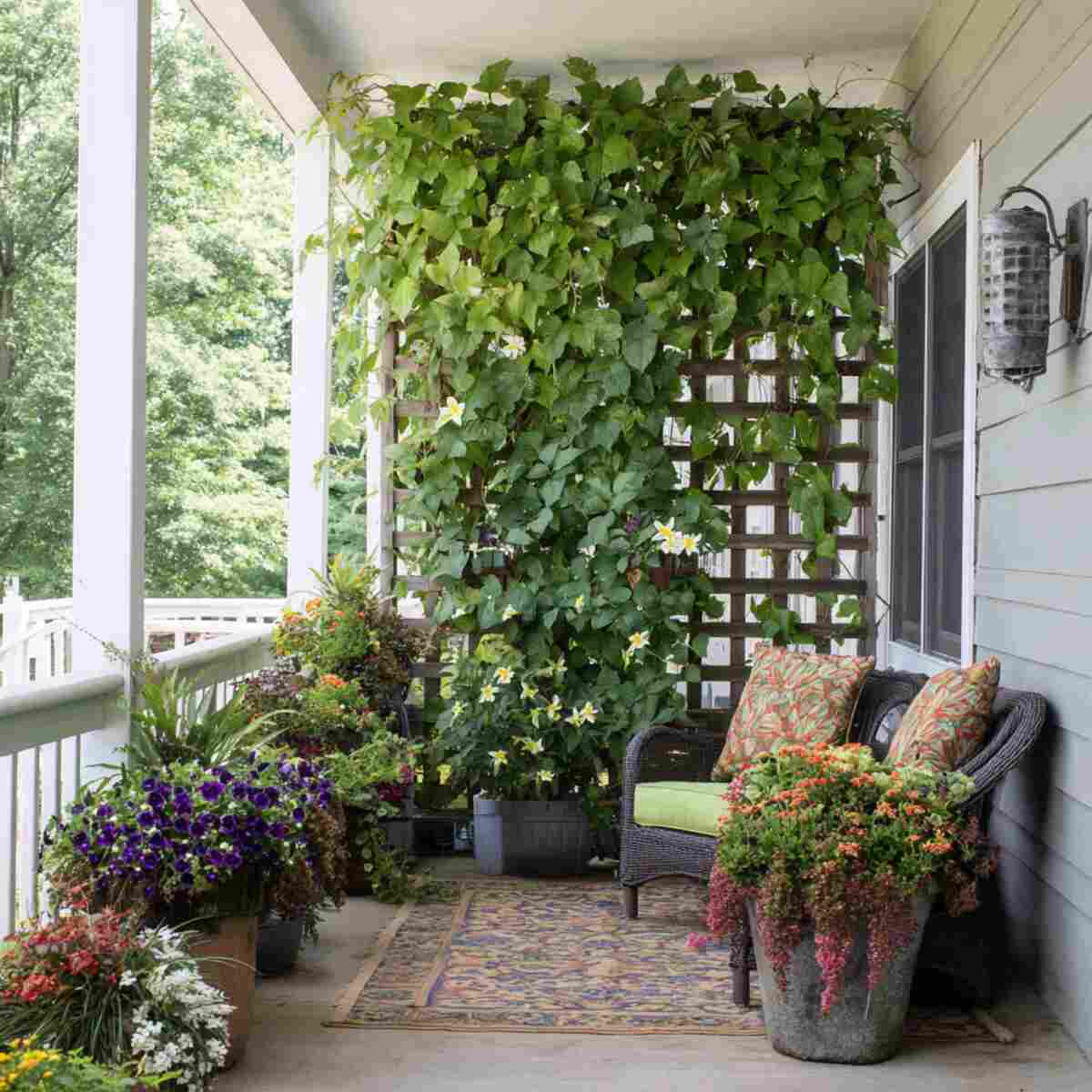 Over time, the plants grow thicker and provide increased coverage and shade. This idea is important for DIY Porch Privacy Screen Ideas because it offers privacy that improves naturally and looks better as it matures.