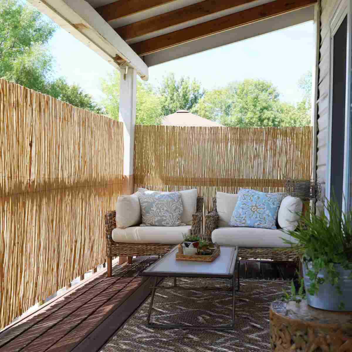Reed or grass fencing is a quick solution often used in DIY Porch Privacy Screen Ideas for instant results. It attaches easily to railings or frames and creates a relaxed, outdoor feel.