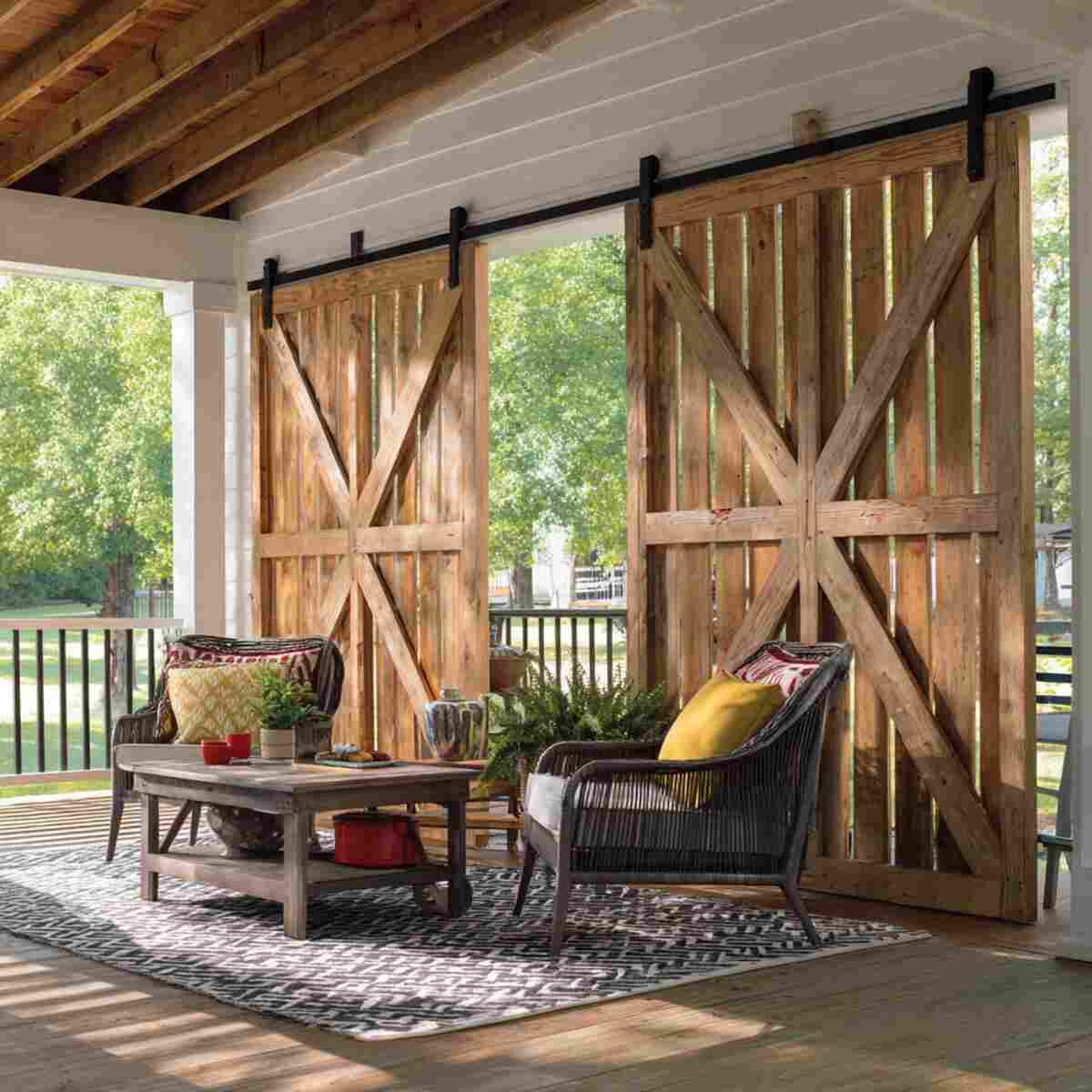 Sliding barn-style panels are functional DIY Porch Privacy Screen Ideas that allow you to open or close sections as needed.