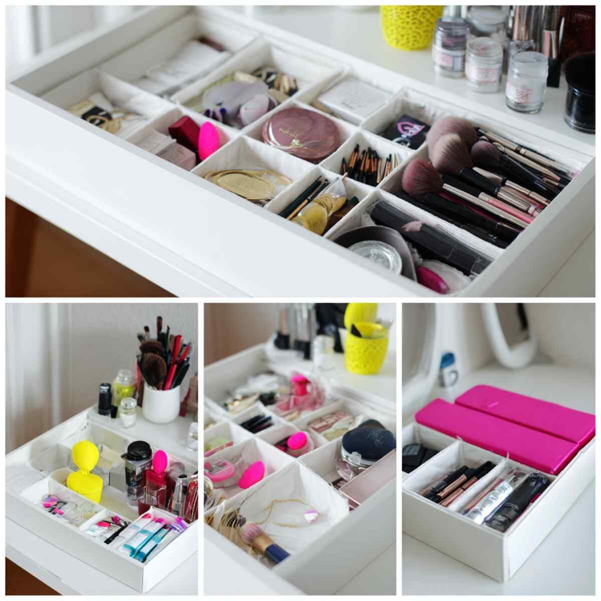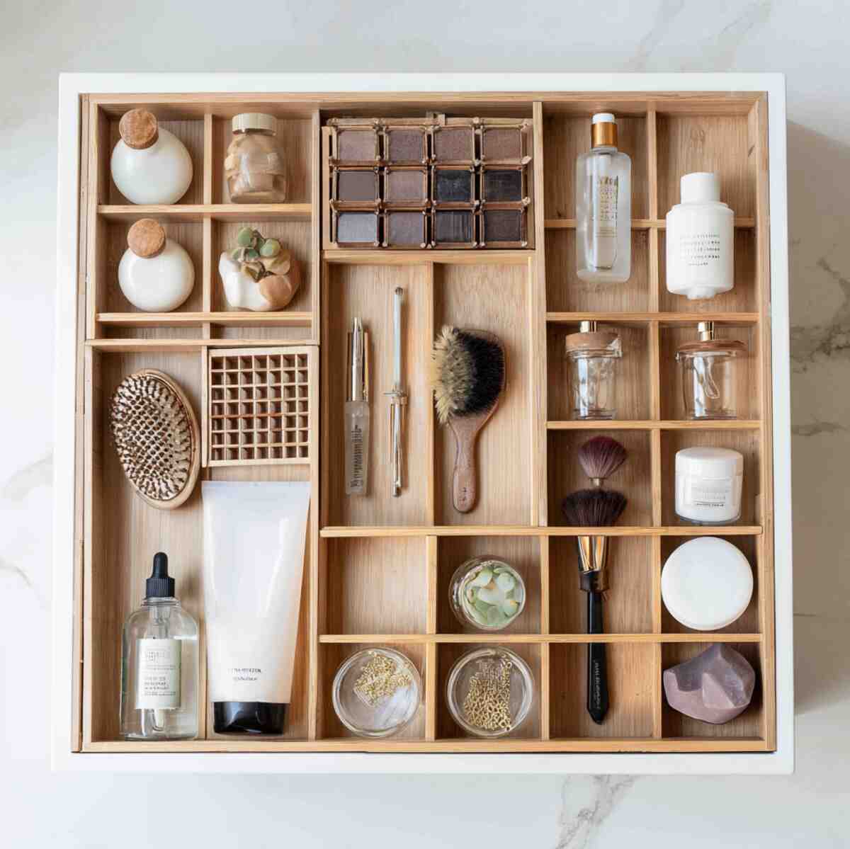From simple cardboard dividers to elegant bamboo trays, each idea helps you save time and keep your beauty items in order.