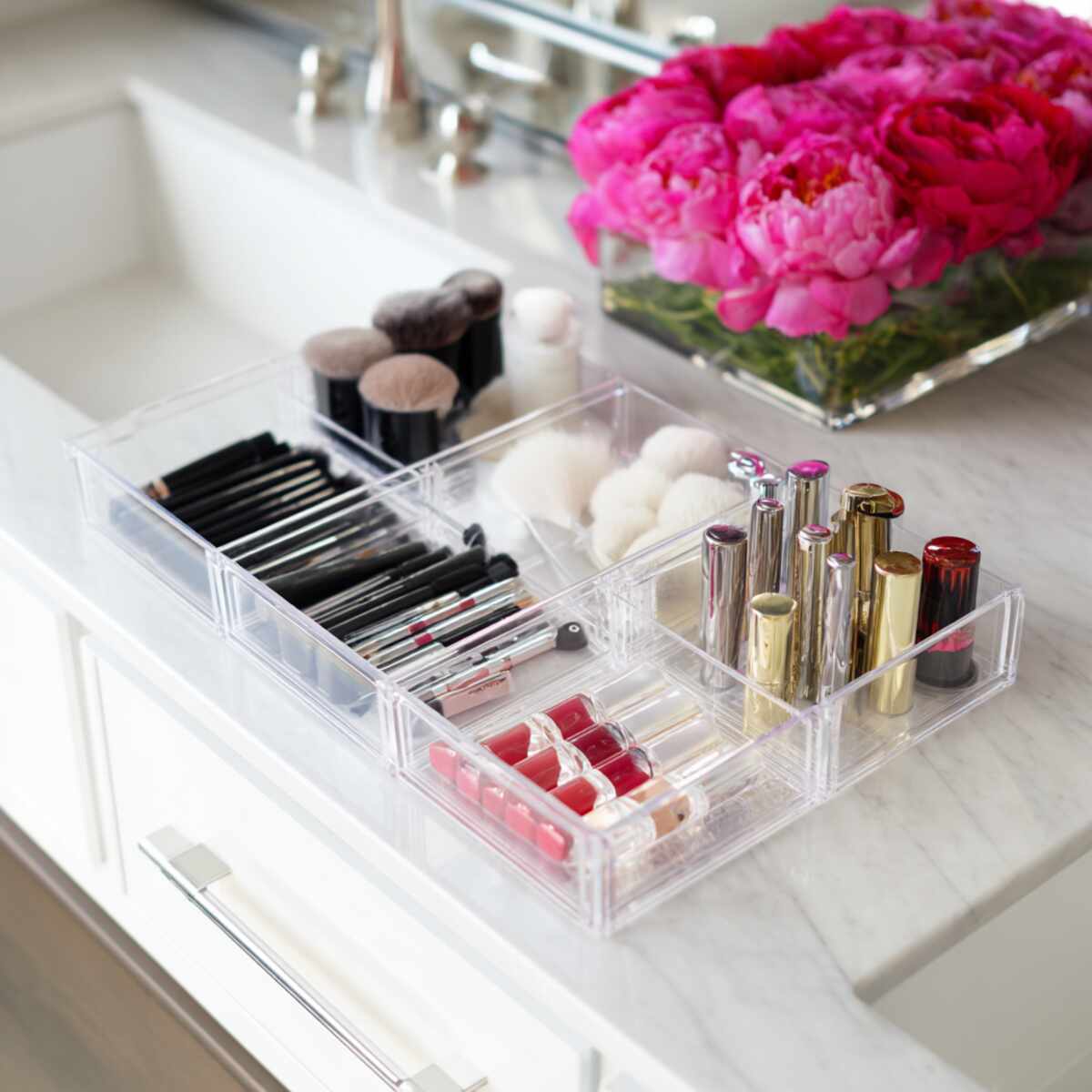 Acrylic tray inserts are perfect for those who prefer a clean and modern aesthetic. These transparent trays make it easy to see and access your beauty essentials without clutter.