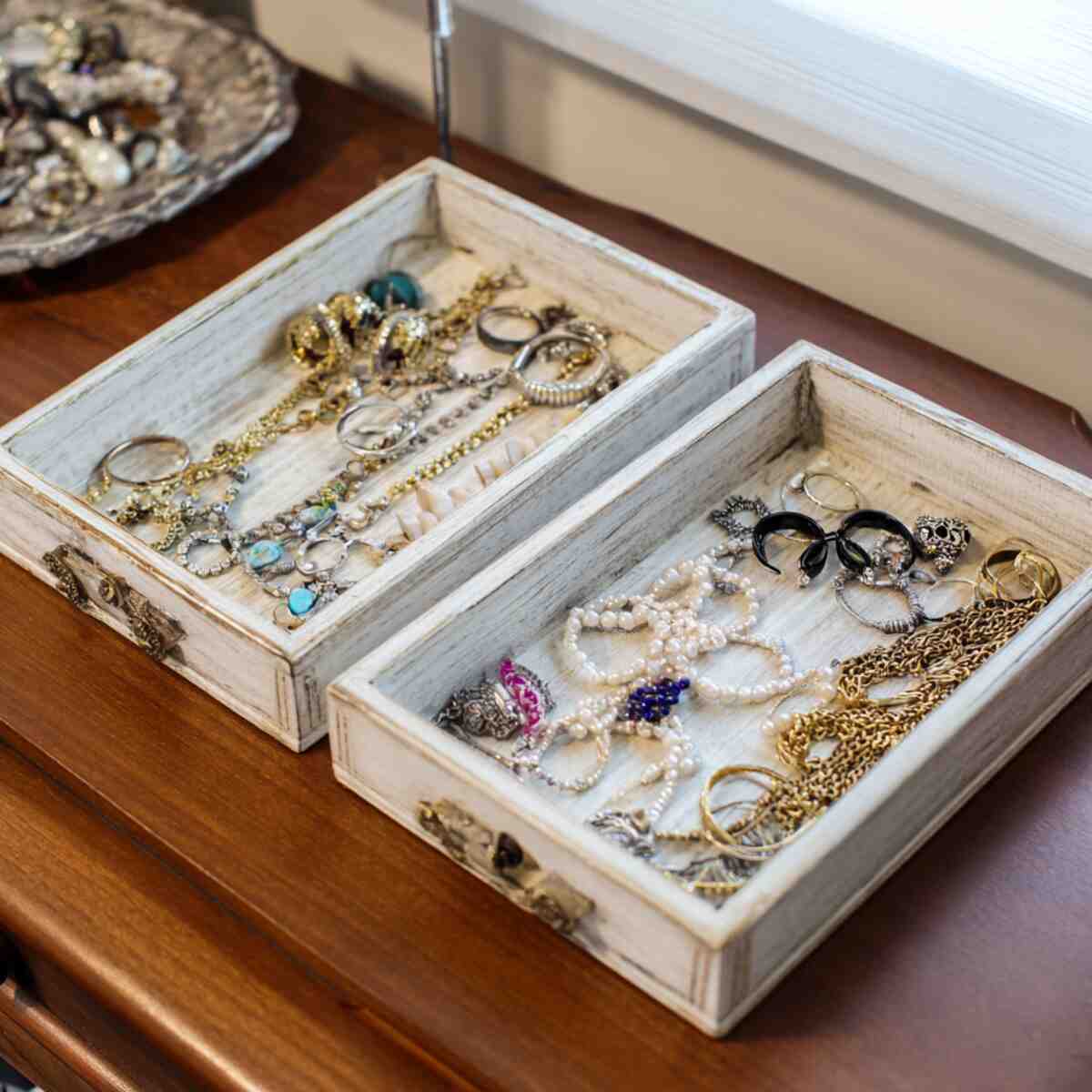 As a DIY Vanity Drawer Organizer Idea, repurposing jewelry trays helps you save money while adding a touch of elegance to your vanity.
