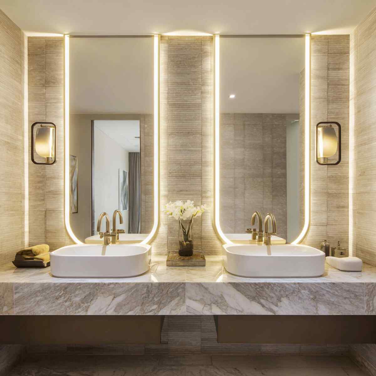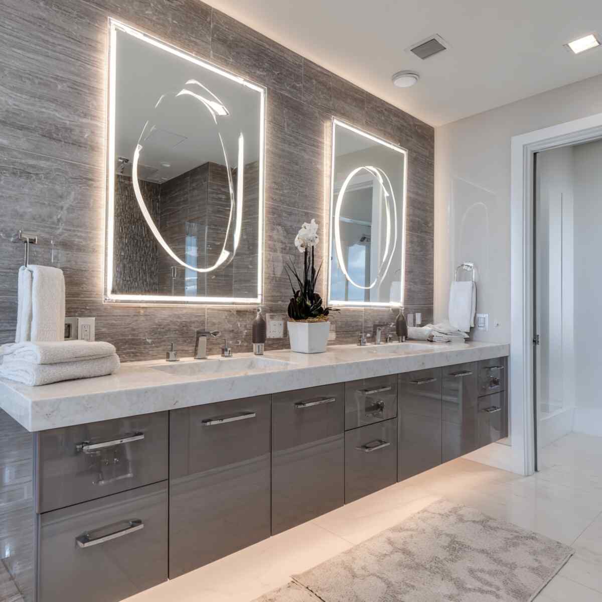 Backlit mirrors bring a luxurious, hotel-style feel to your double vanity setup.