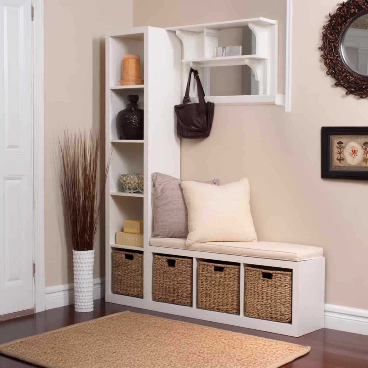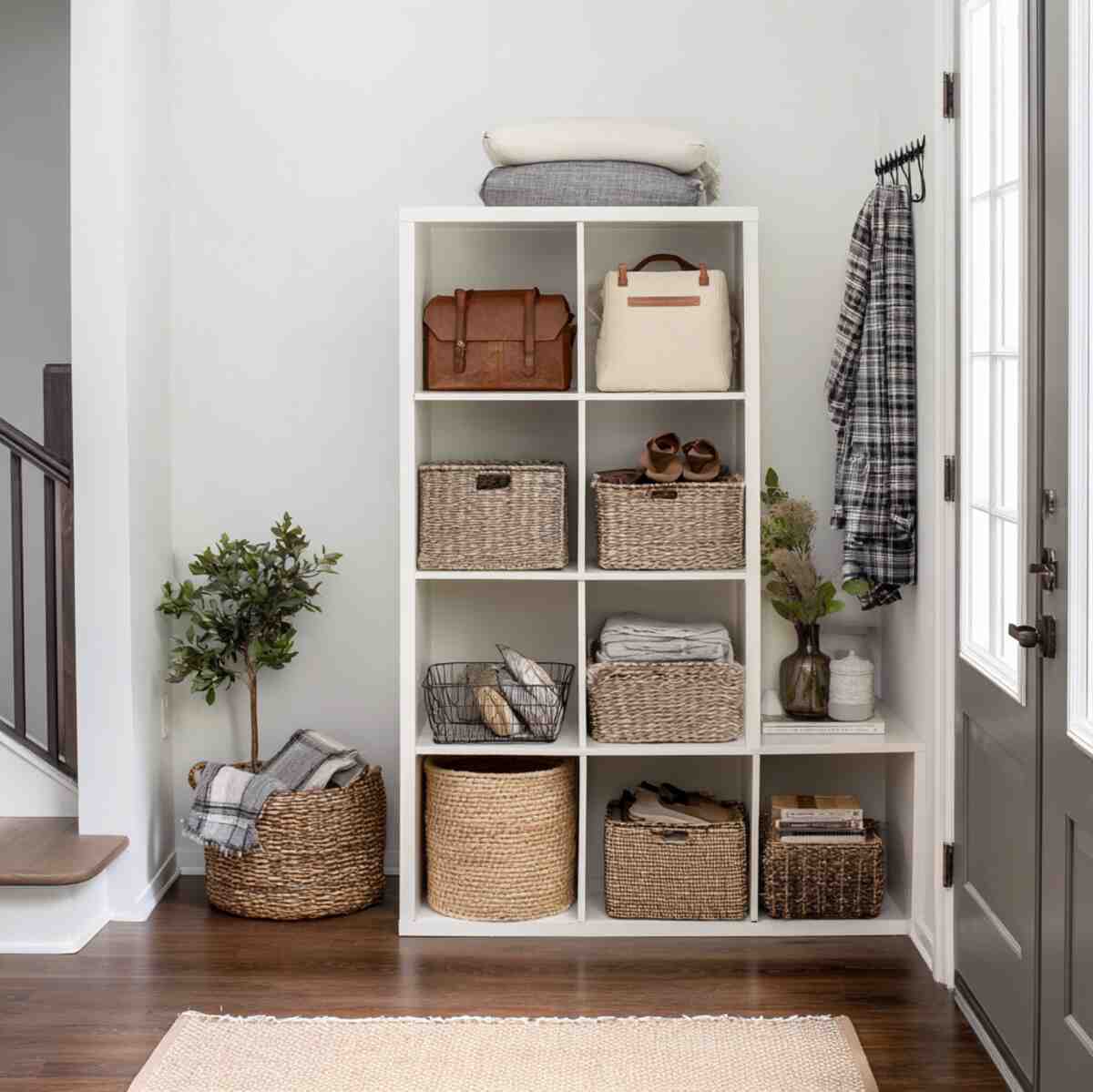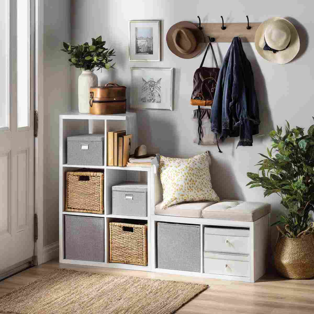 This Entryway Storage Cube Idea keeps your space tidy without taking up valuable walking room.