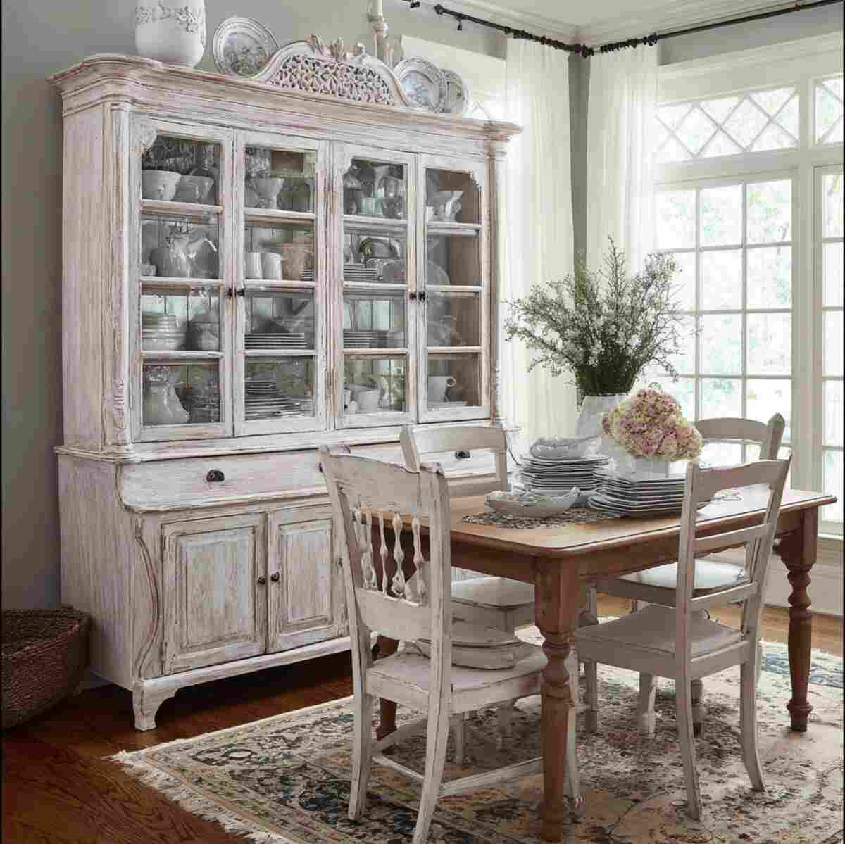 A country chic chalk-painted hutch offers a soft, matte finish that feels both vintage and handmade.
