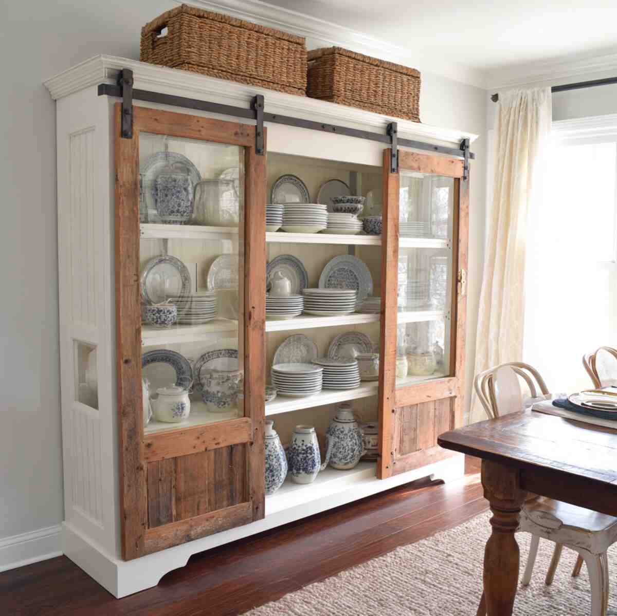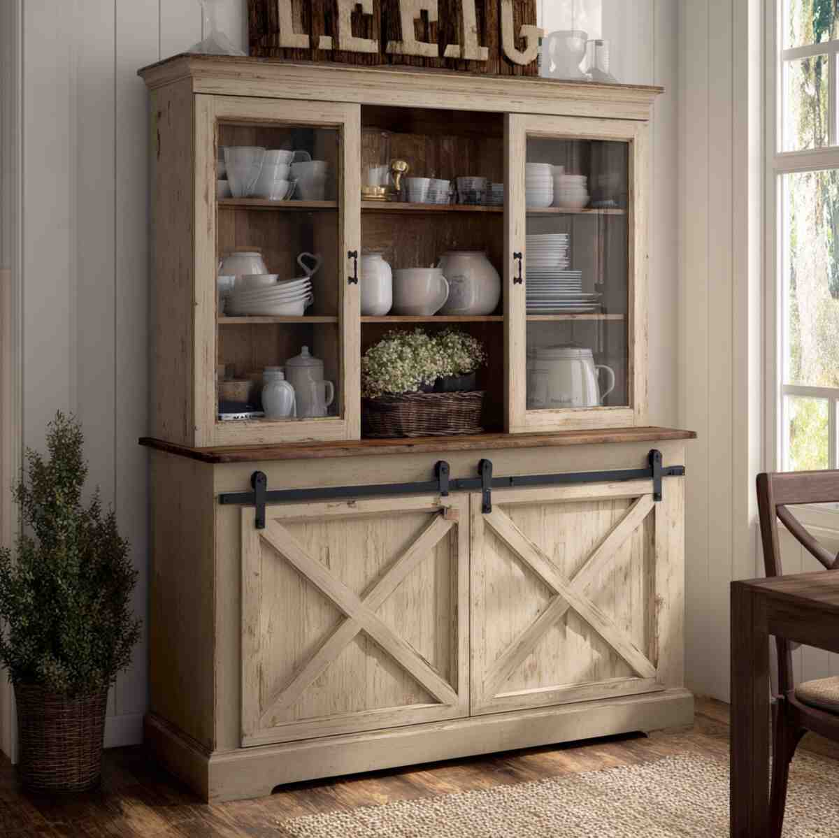 An open shelf barn door hutch is both stylish and functional, offering easy access to your everyday dishes and décor.