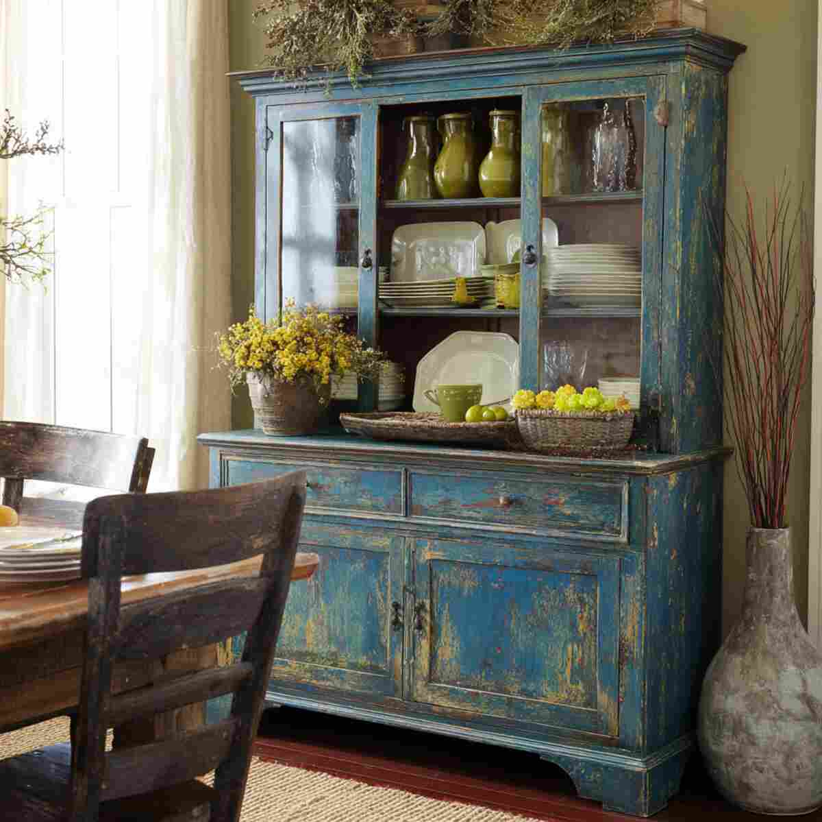 A vintage distressed two-tone hutch combines contrasting colors, usually white and natural wood, to create a beautifully aged farmhouse look.