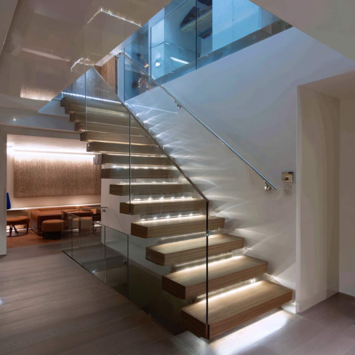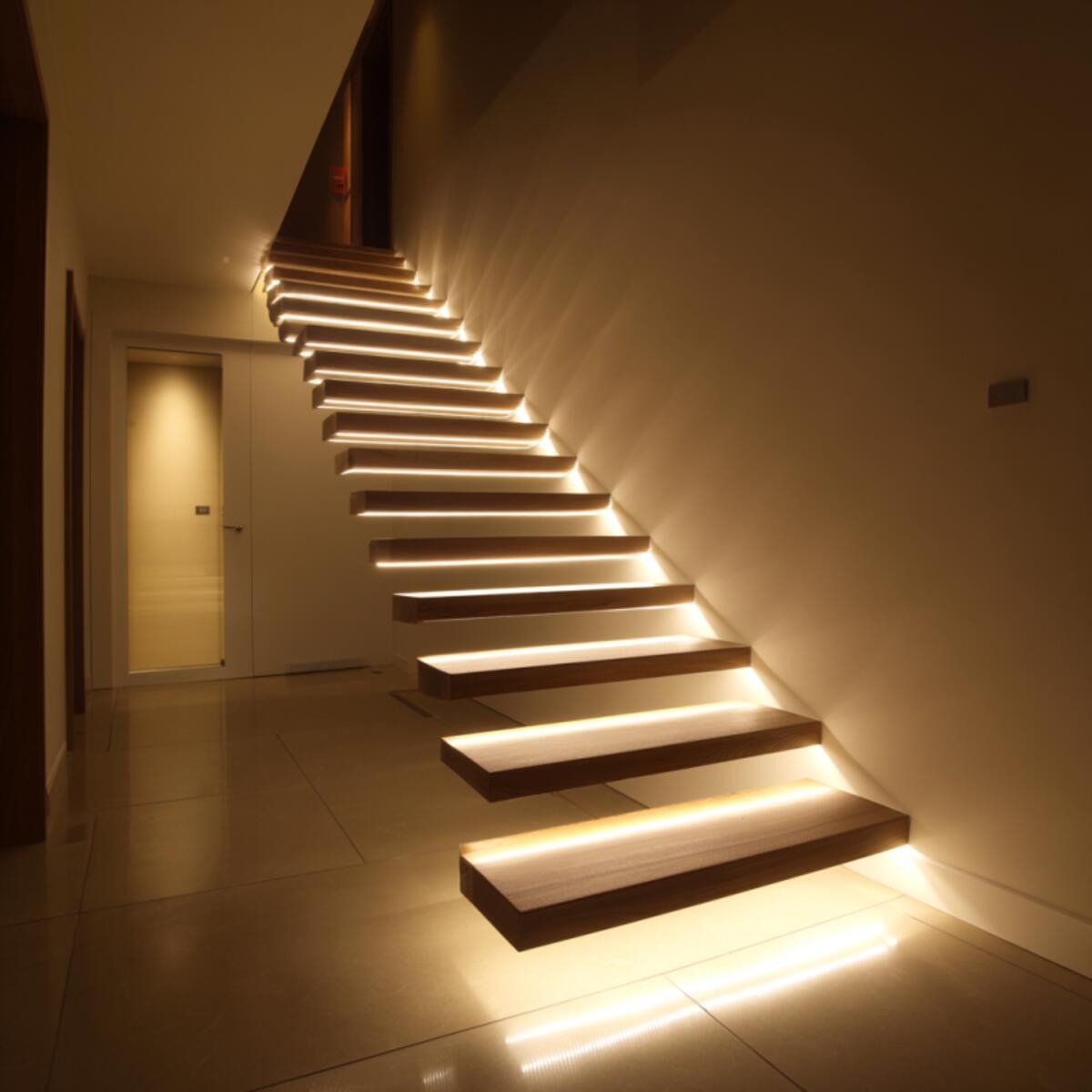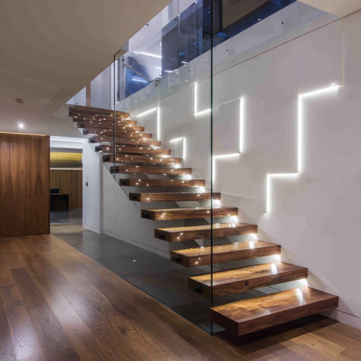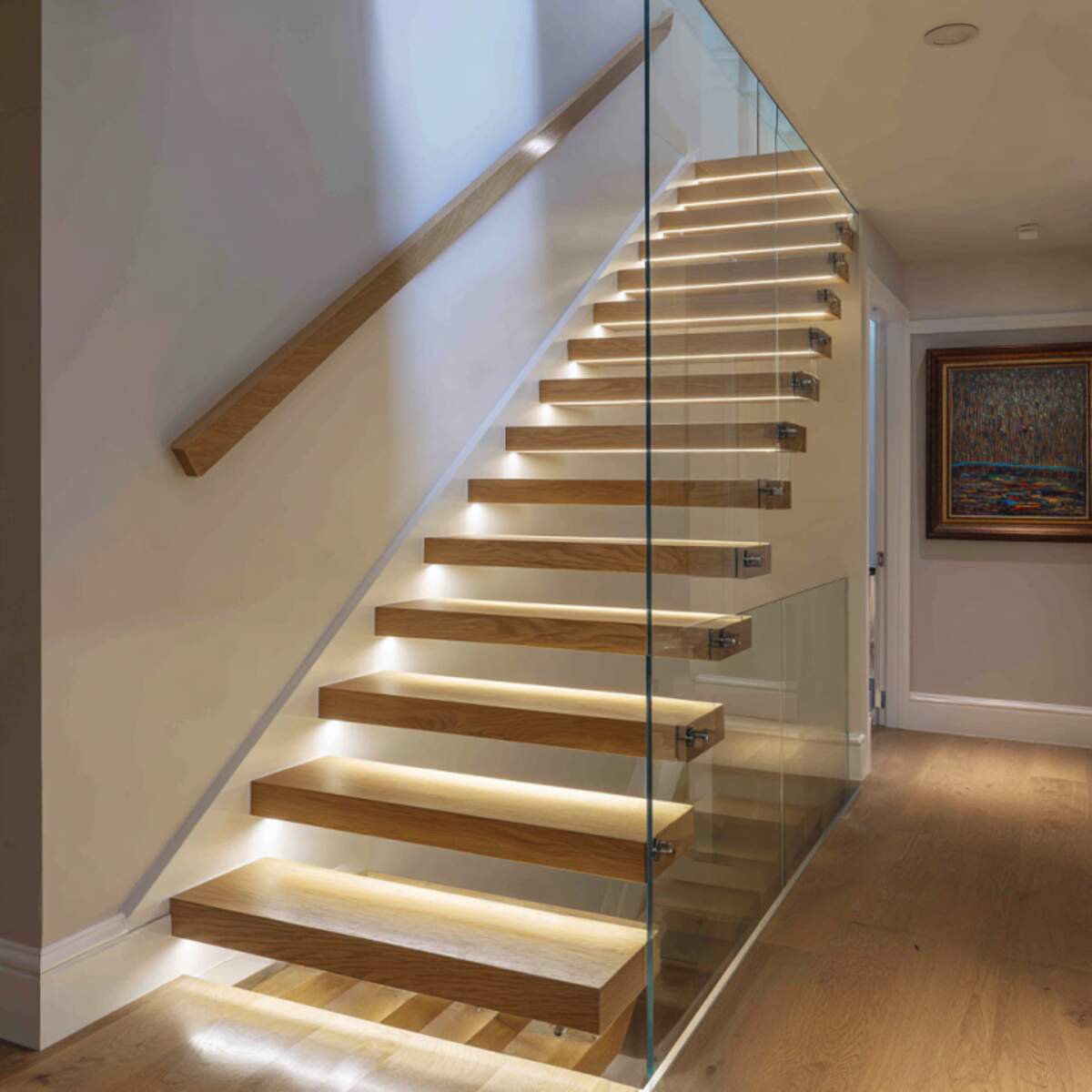 As Floating Stair Lighting Ideas, they turn the stairs into a visual feature rather than just a functional element.