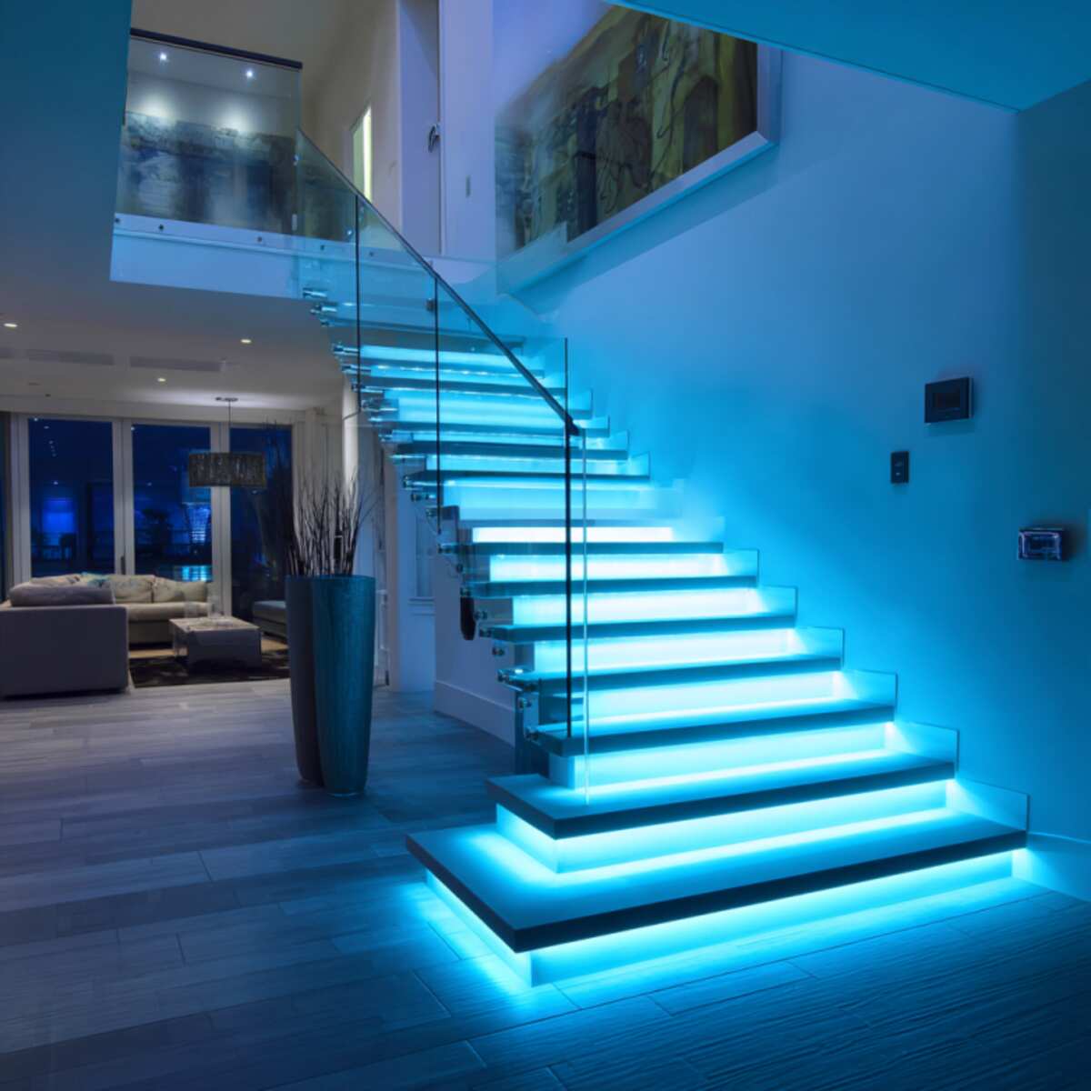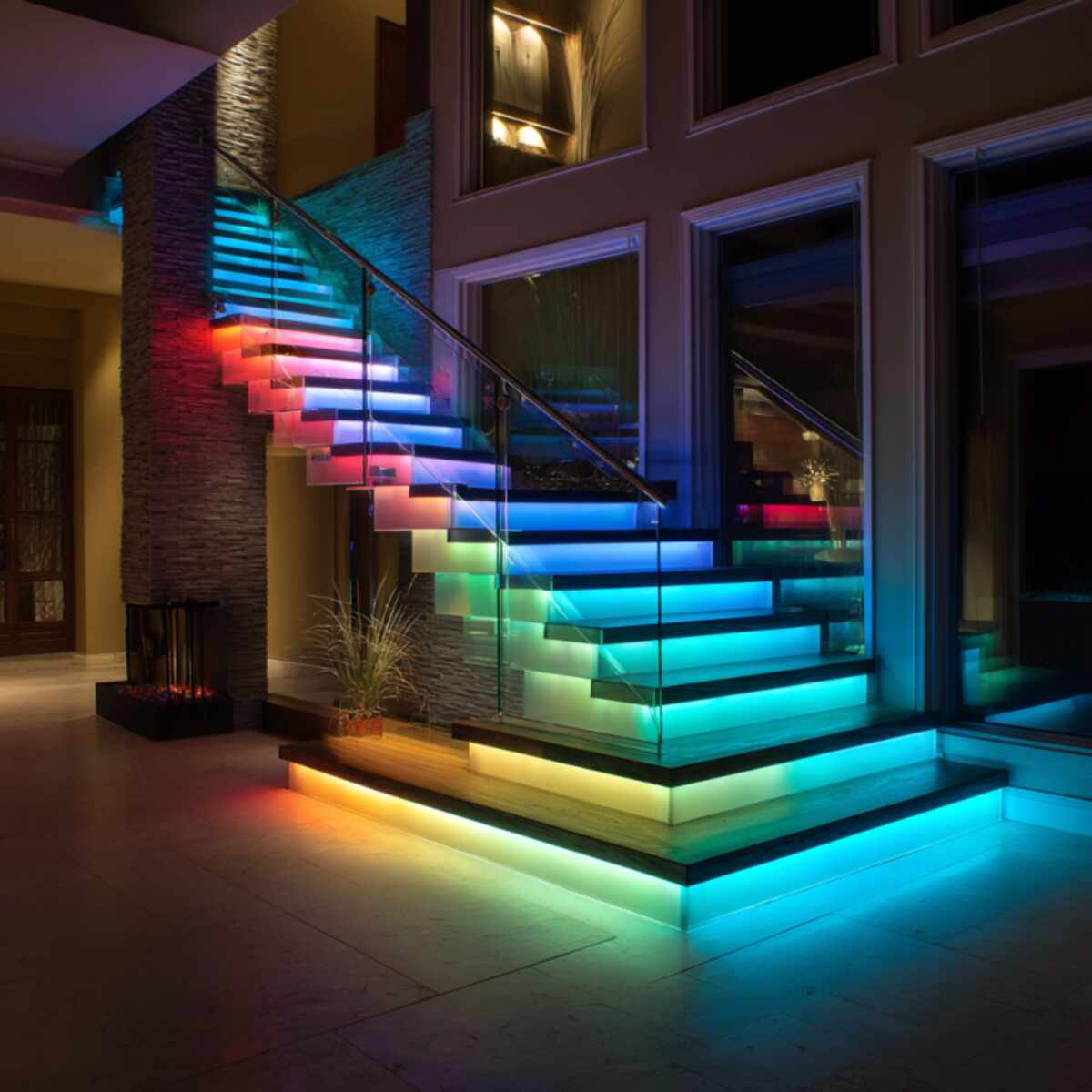 RGB lights bring flexibility, which makes them creative Floating Stair Lighting Ideas for dynamic interiors. They allow homeowners to change moods or match special occasions without altering the staircase design.