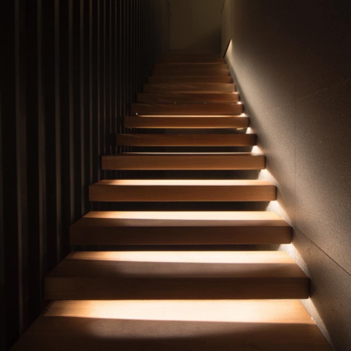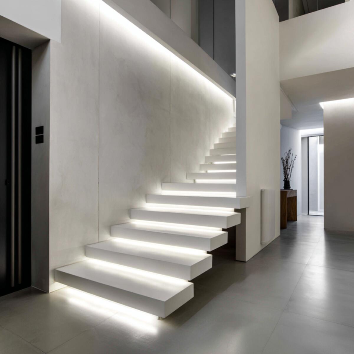 17. Continuous Floating Strip Lighting Along the Staircase Wall