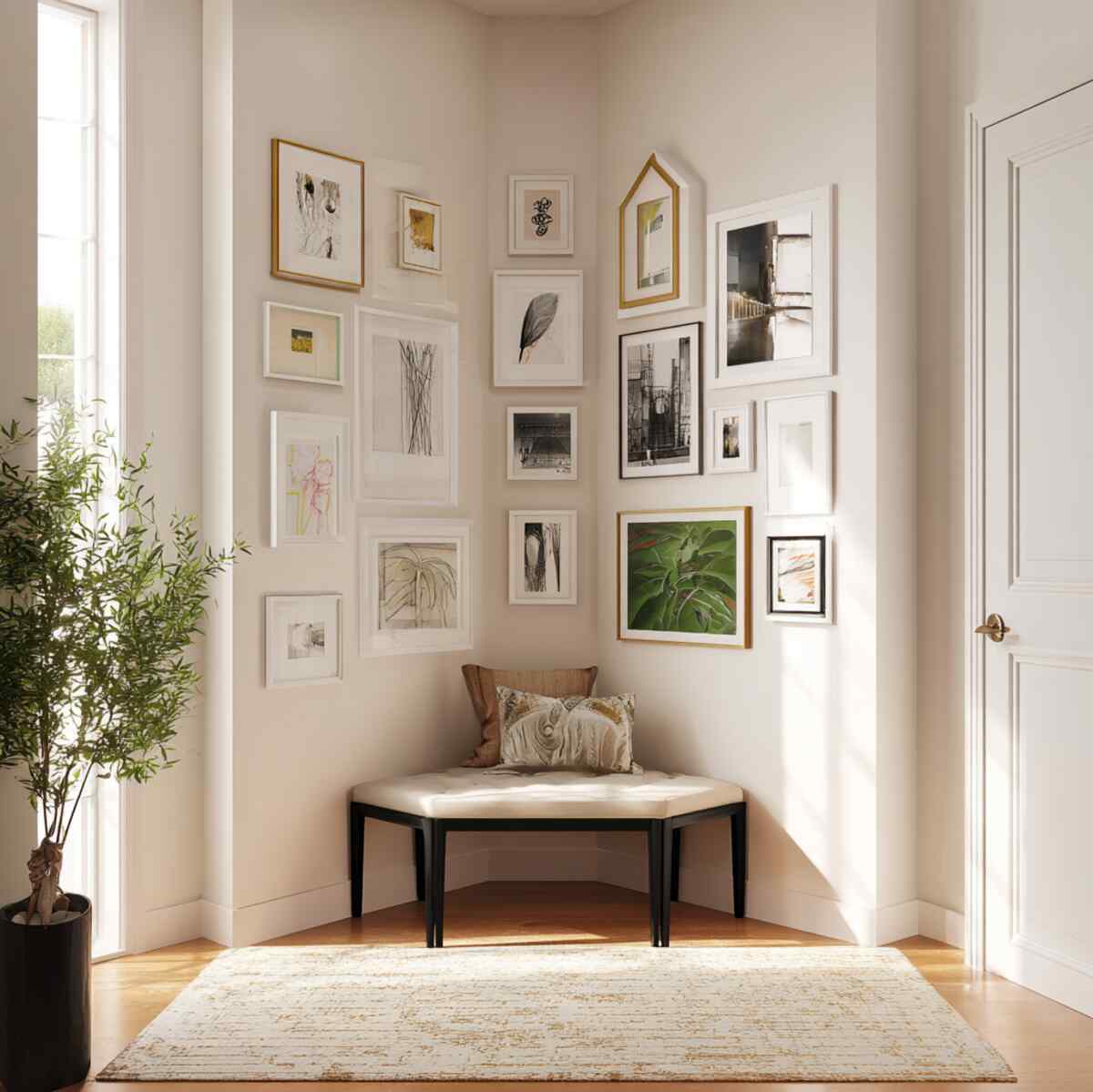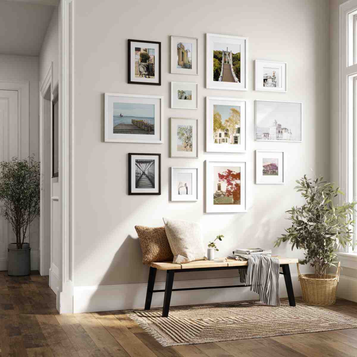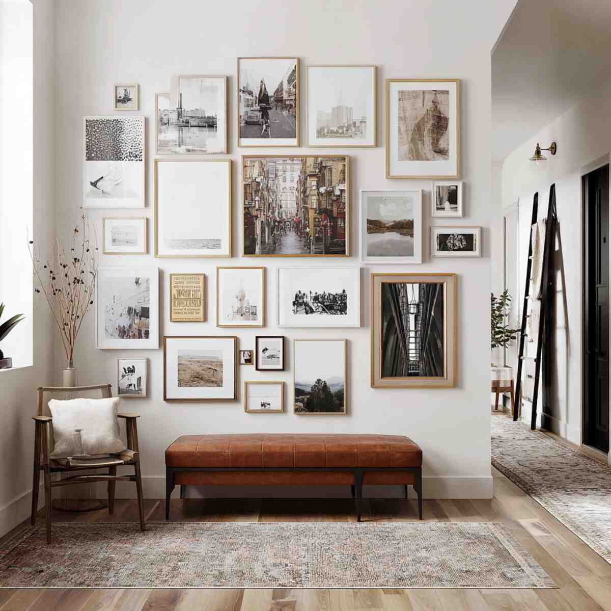 Among Gallery Wall Layout Ideas for Small Hallways, this one transforms plain walls into an eye-catching art display.