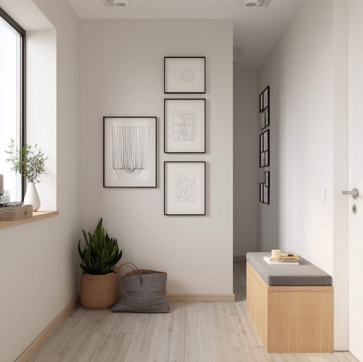 As a minimalist Gallery Wall Layout Idea for Small Hallways, it creates impact with just a few pieces.