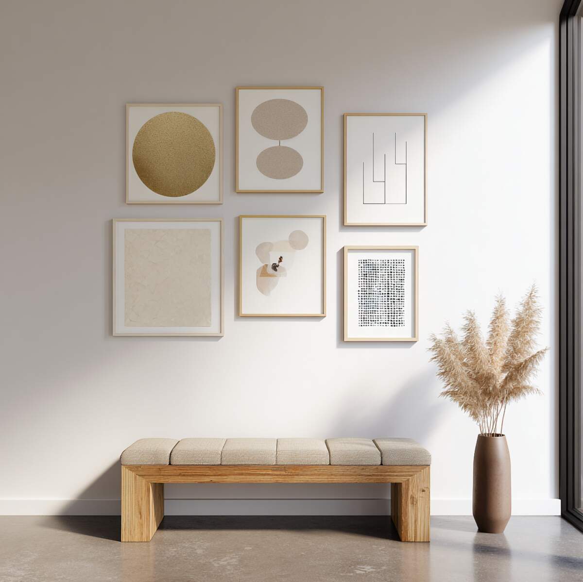 A grid layout brings order and structure to narrow spaces, making it one of the most timeless Gallery Wall Layout Ideas for Small Hallways.