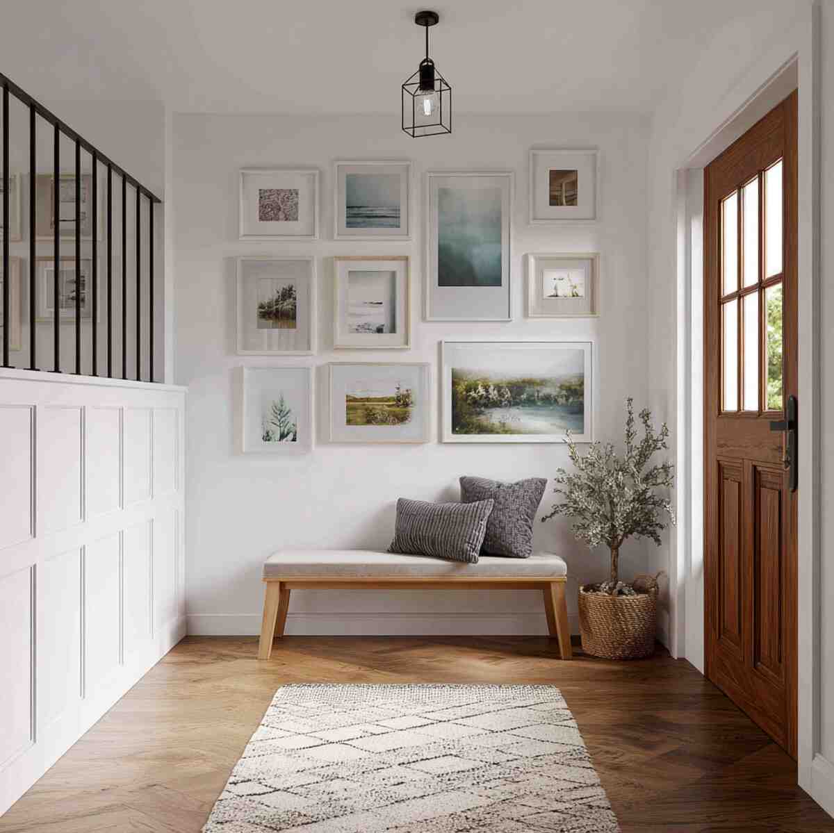 Walking through a small hallway doesn’t have to feel plain, using smart gallery wall layout ideas can turn those narrow walls into a simple but beautiful display of your favorite pictures and art.