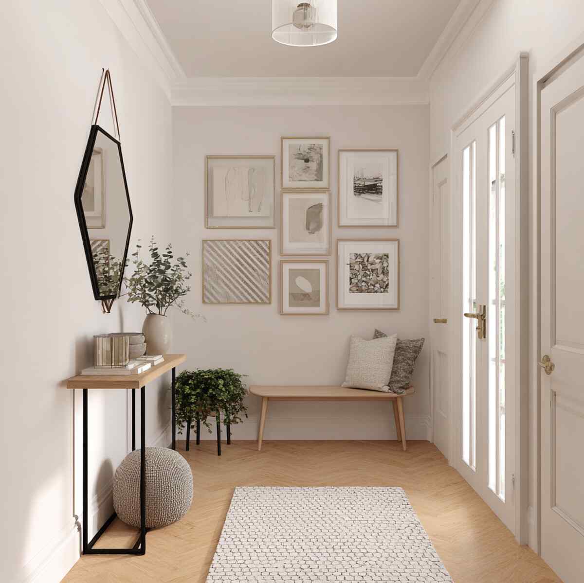 As one of the most practical Gallery Wall Layout Ideas for Small Hallways, it helps make the area look longer and more spacious.