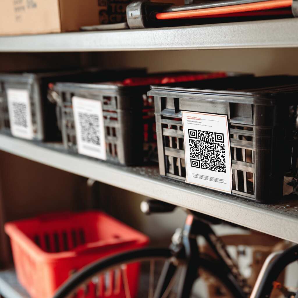 QR code inventory labels are modern Garage Labeling and Organization Ideas that connect physical storage to digital tracking.