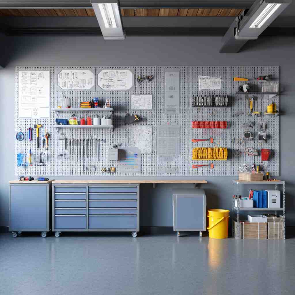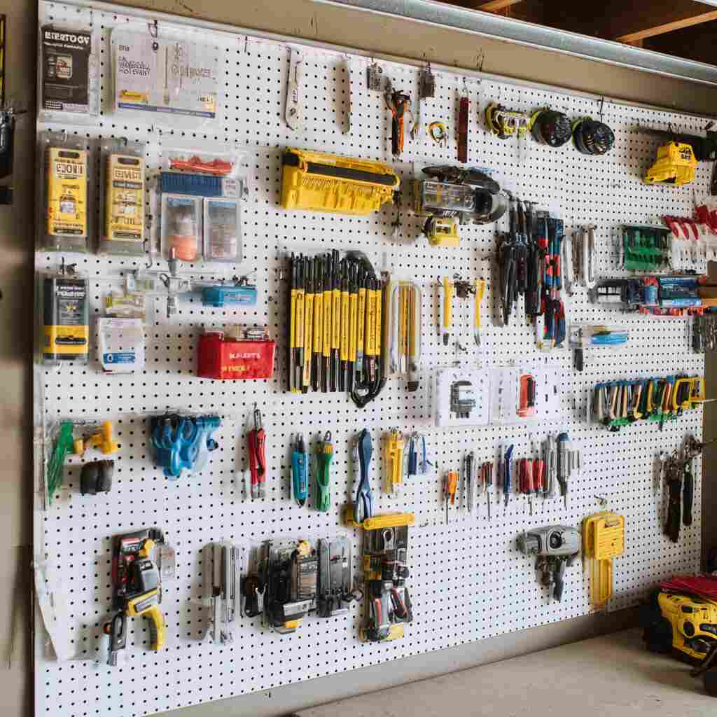 Wall-mounted pegboard labels are classic Garage Labeling and Organization Ideas that keep tools visible and well-arranged.