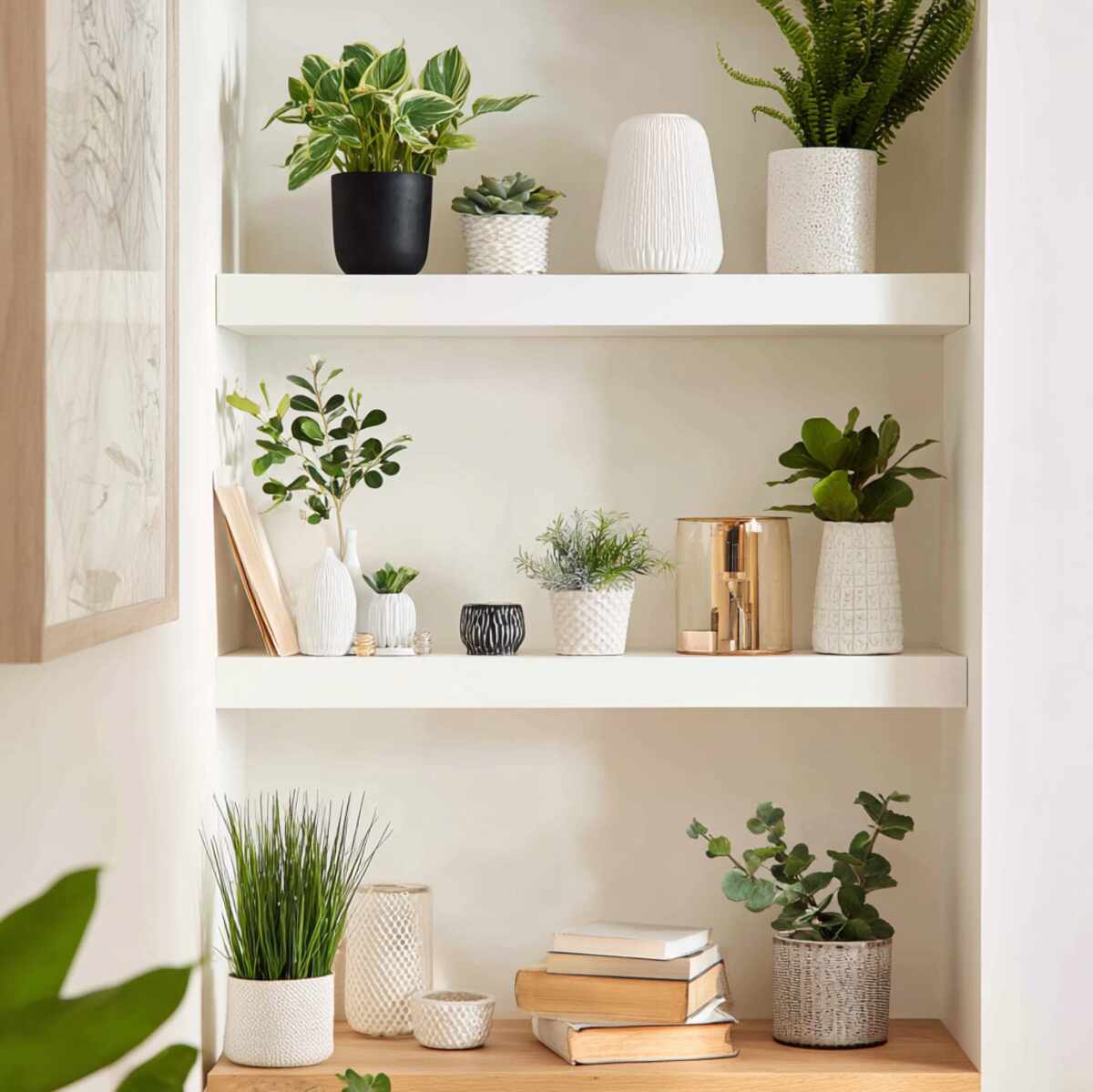 Minimal White Shelves with Small Plants
