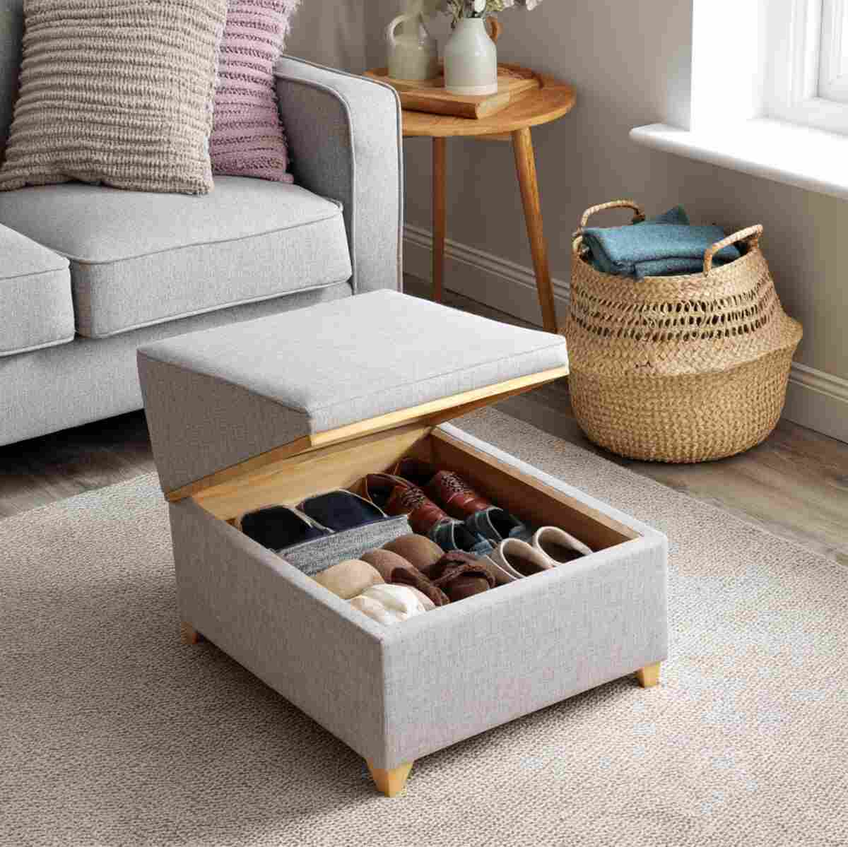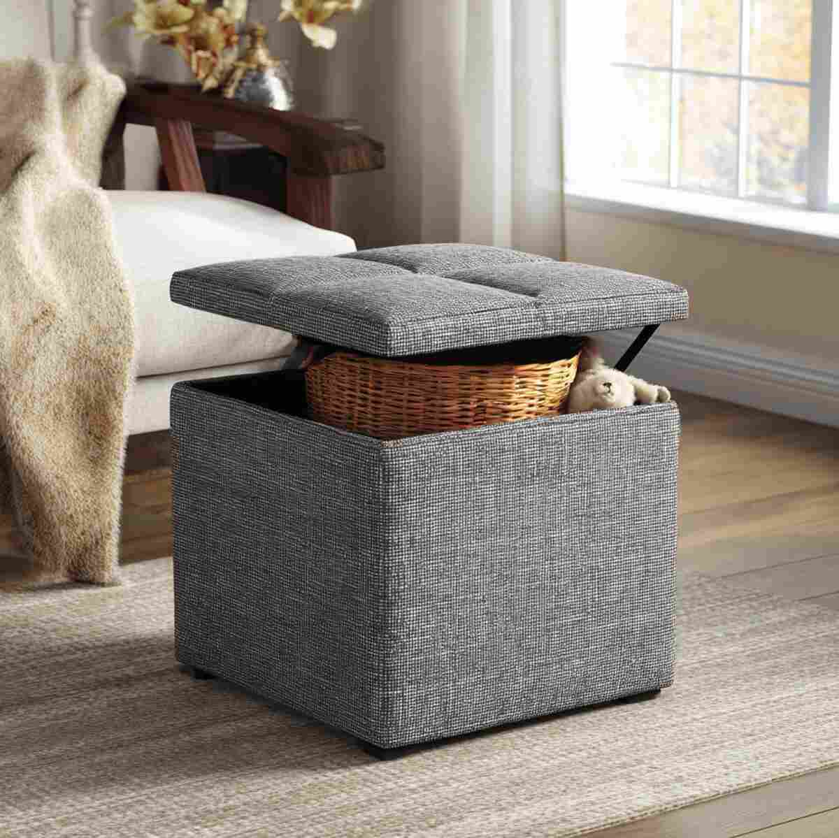 A foldable cube ottoman is compact, lightweight, and incredibly functional. You can easily lift the lid to store toys, shoes, or seasonal accessories, then fold it flat when not in use.