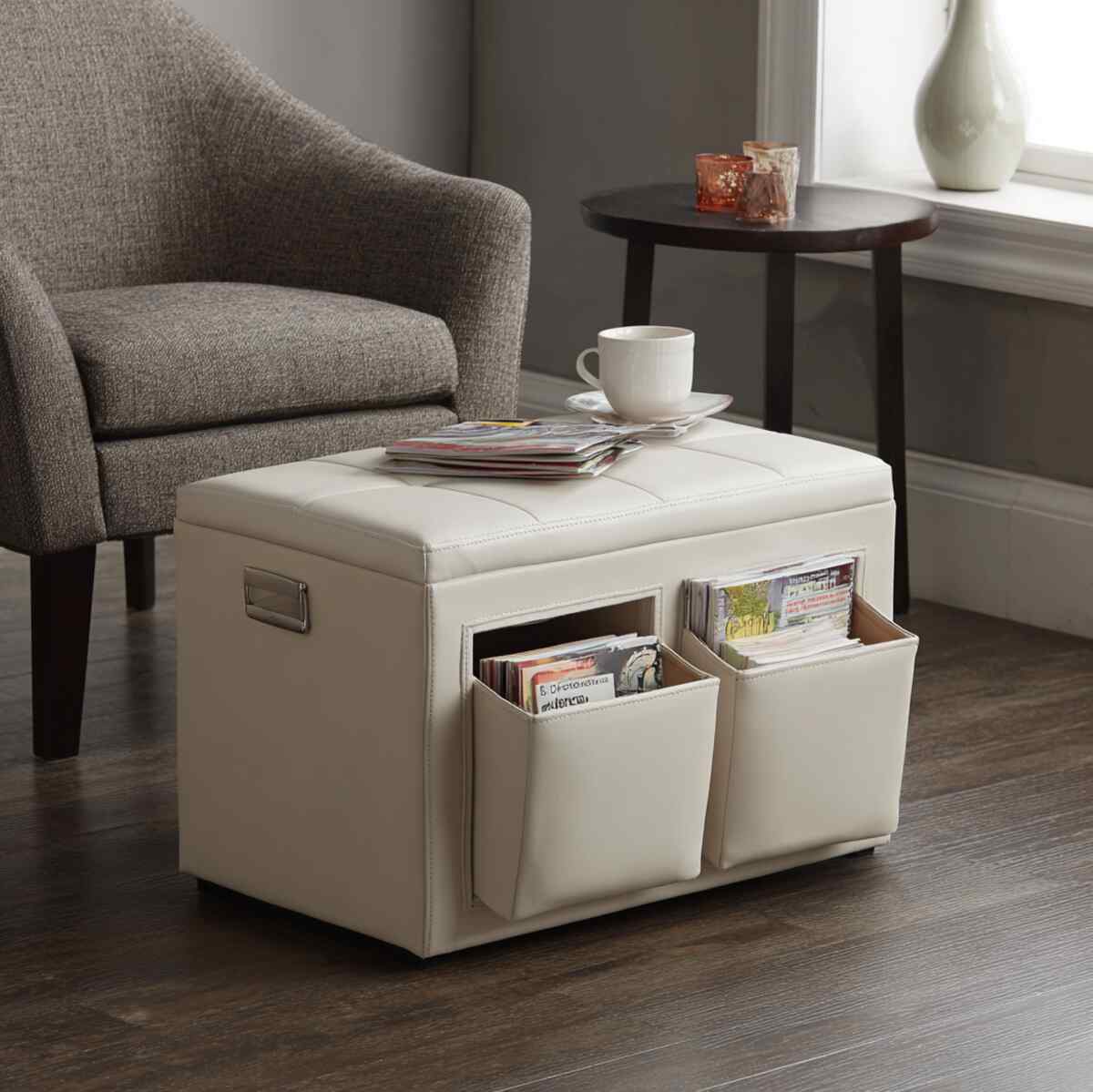 While the main body provides hidden storage, the side compartments add easy access to daily essentials. This hybrid concept expands the possibilities of Hidden Storage Ottoman Ideas by mixing open and closed storage features.