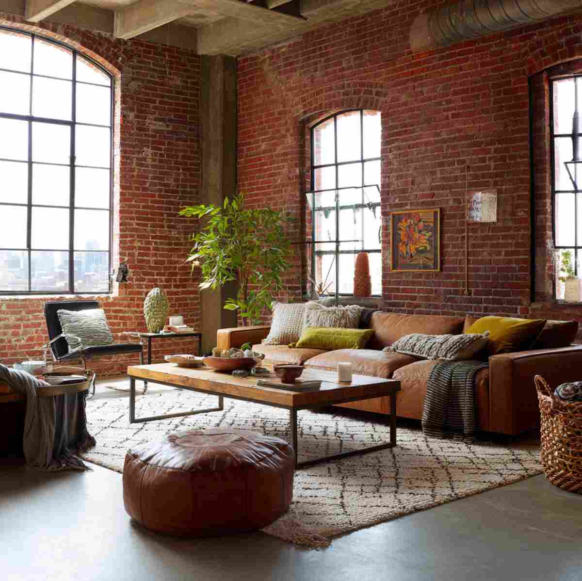 An industrial living room is all about mixing raw, simple materials like wood, metal, and brick to create a cozy space that feels stylish and modern.