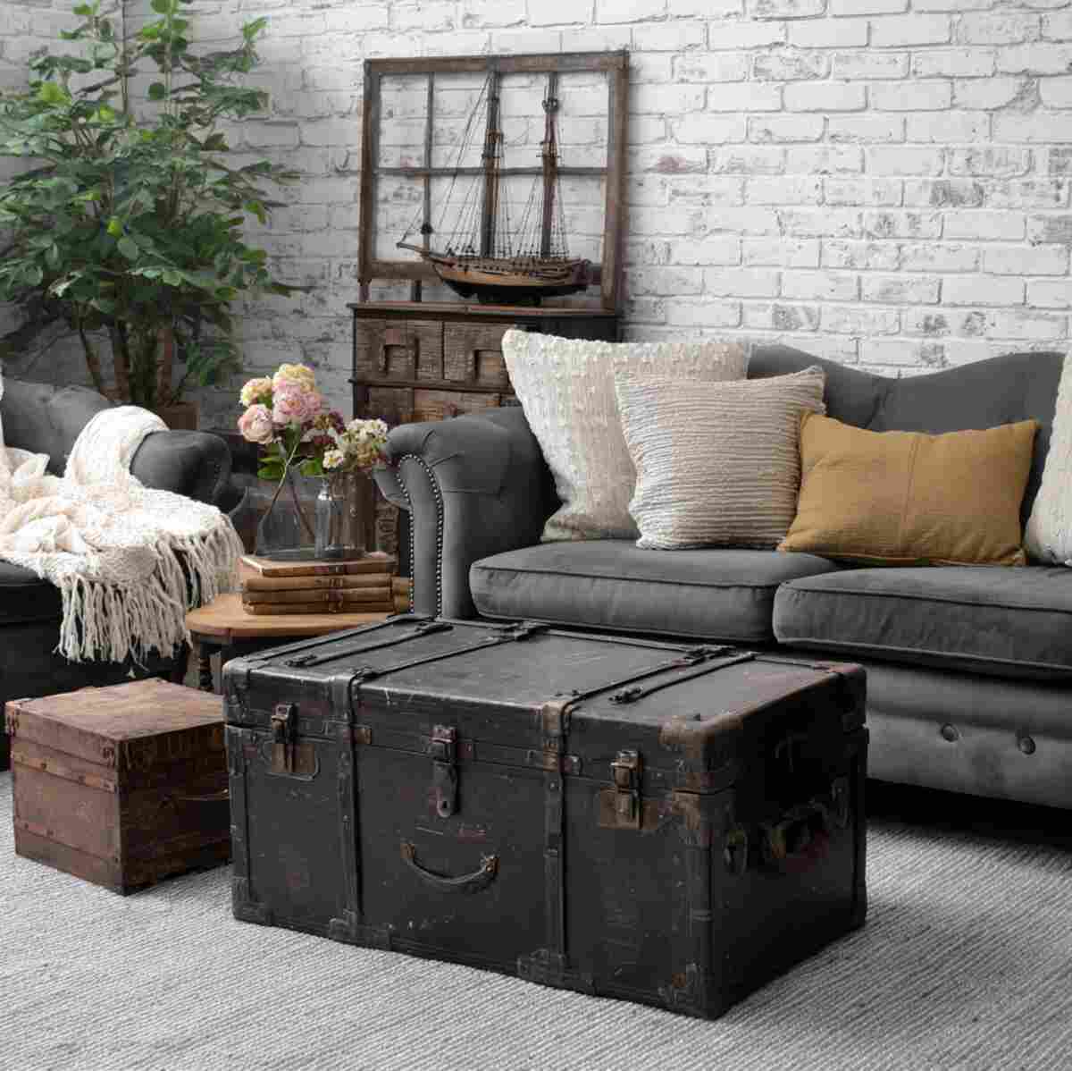 Vintage trunks double as storage and style, making them a versatile choice for Industrial Living Room Decor Ideas.
