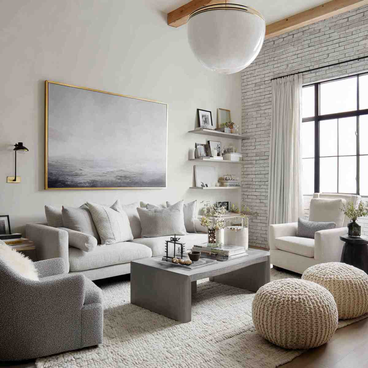 A neutral color palette is the foundation of Industrial Living Room Decor Ideas, setting the tone for all other elements.