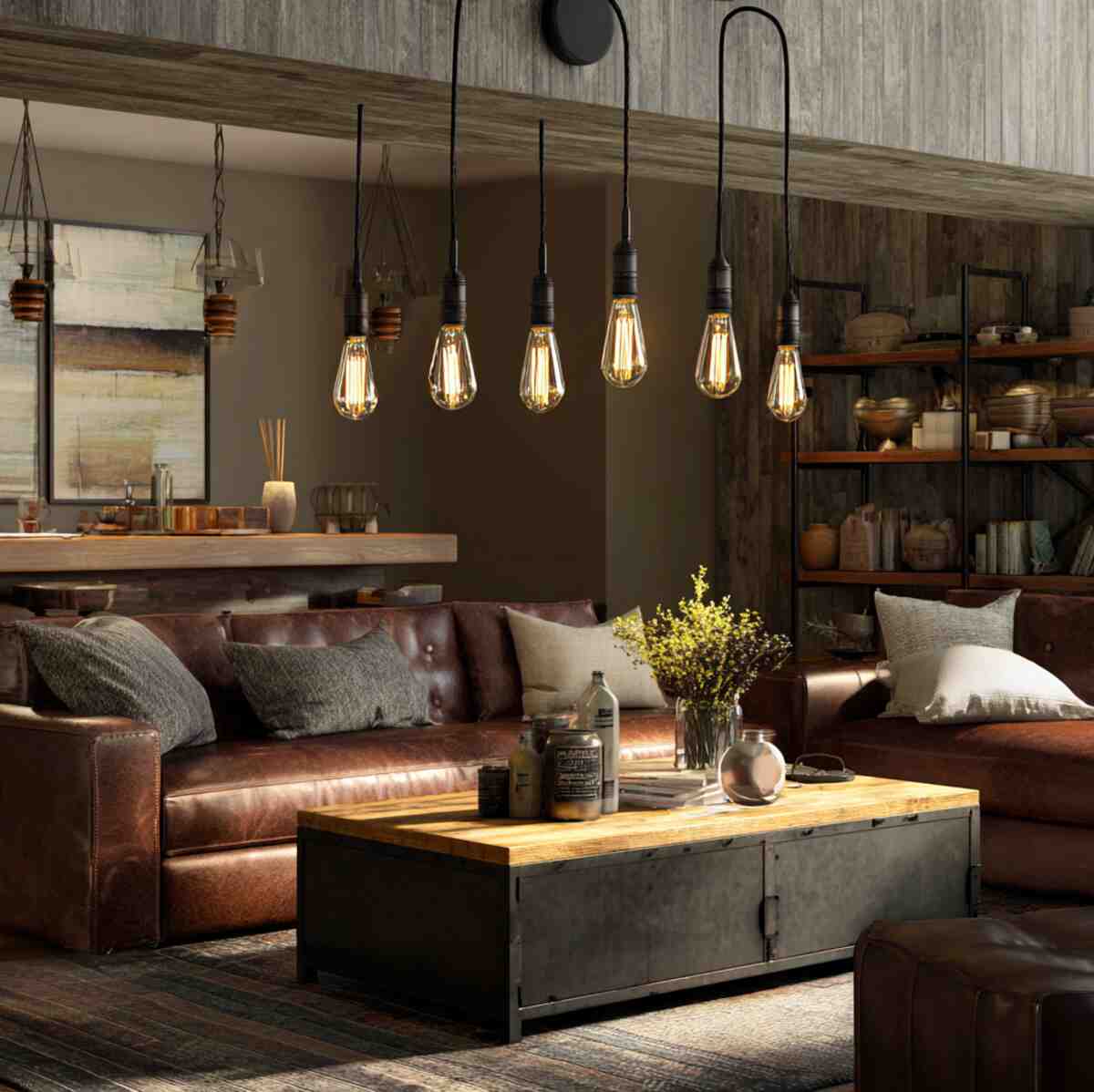 Edison bulb lighting is a must-have for Industrial Living Room Decor Ideas, as it highlights the vintage, factory-inspired charm.