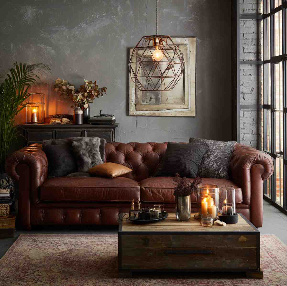 A leather sofa adds timeless style and durability, making it one of the most practical Industrial Living Room Decor Ideas.