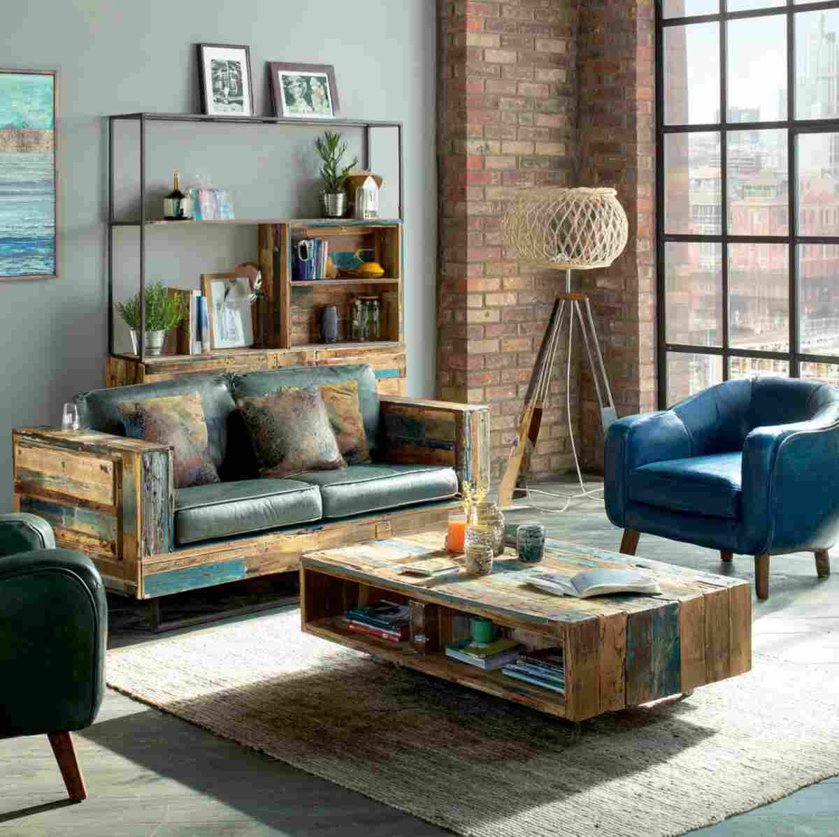 Reclaimed wood furniture is essential in Industrial Living Room Decor Ideas, as it combines sustainability with style.