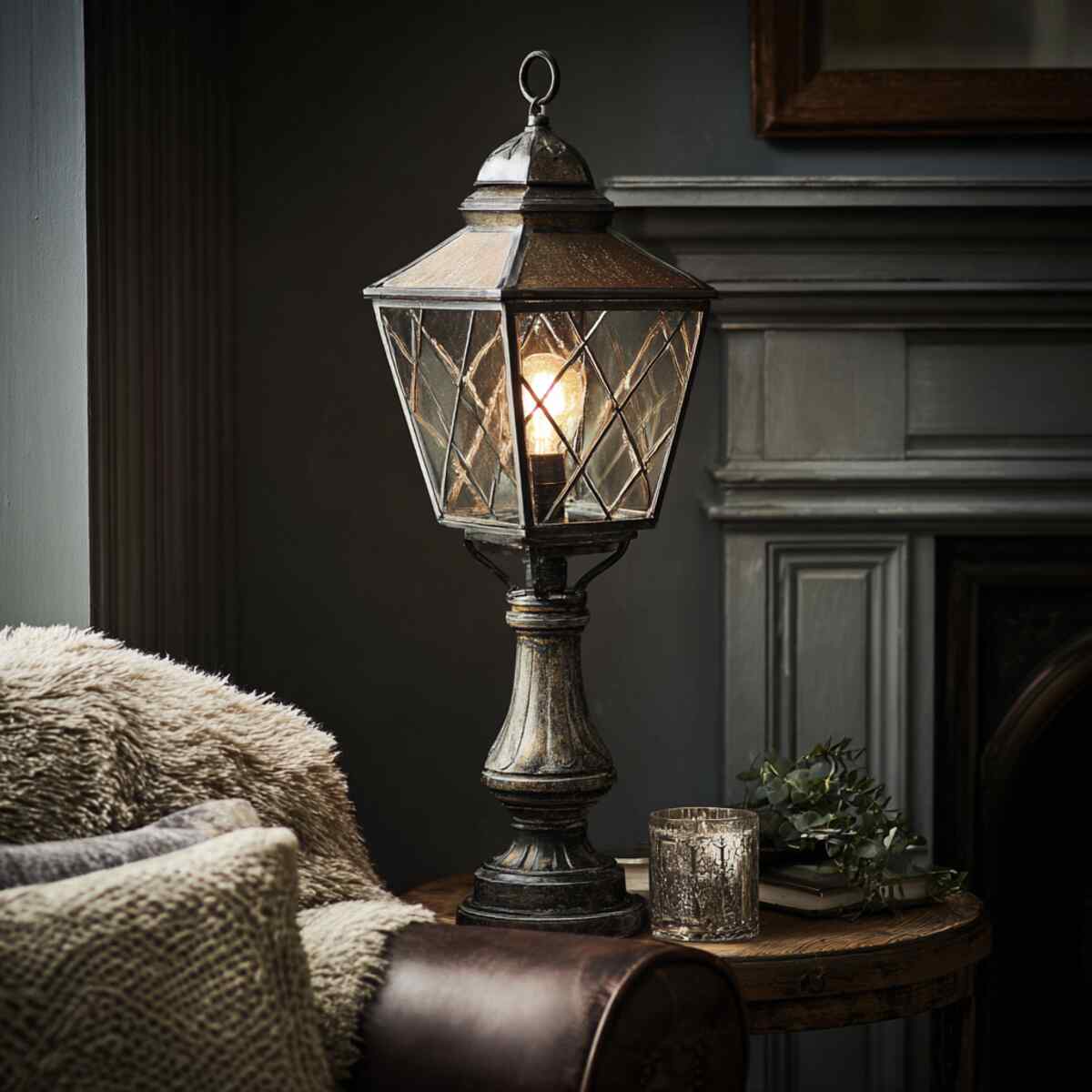 A vintage lantern-style lamp adds charm and nostalgia to any corner. Its old-world design and gentle lighting create a cozy and timeless appeal.