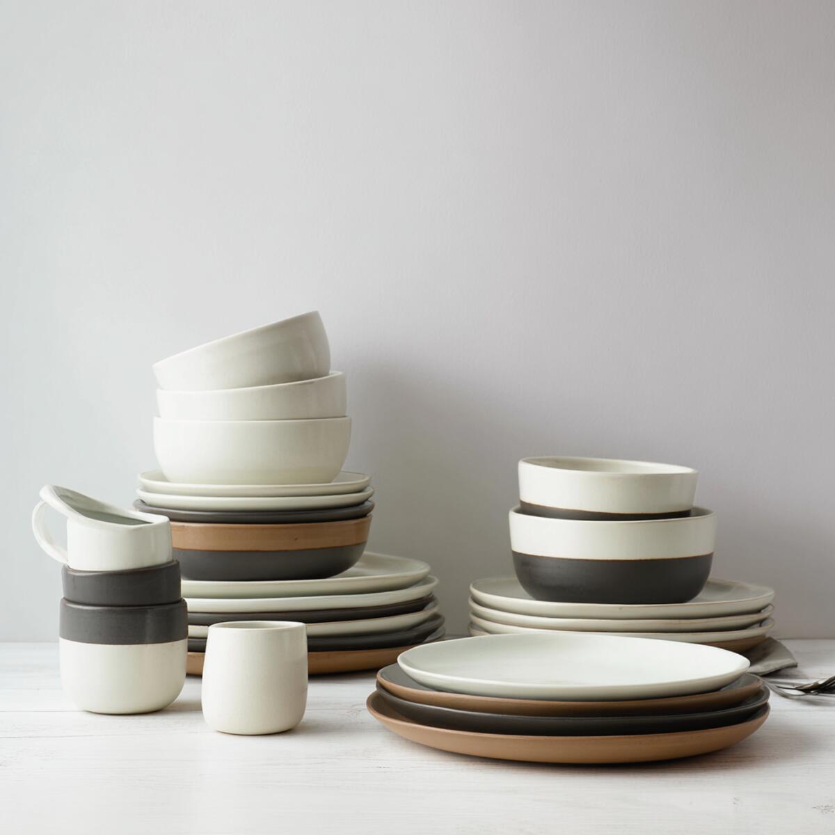 10. Stacked Minimal Dinnerware in Two-Tone Colors