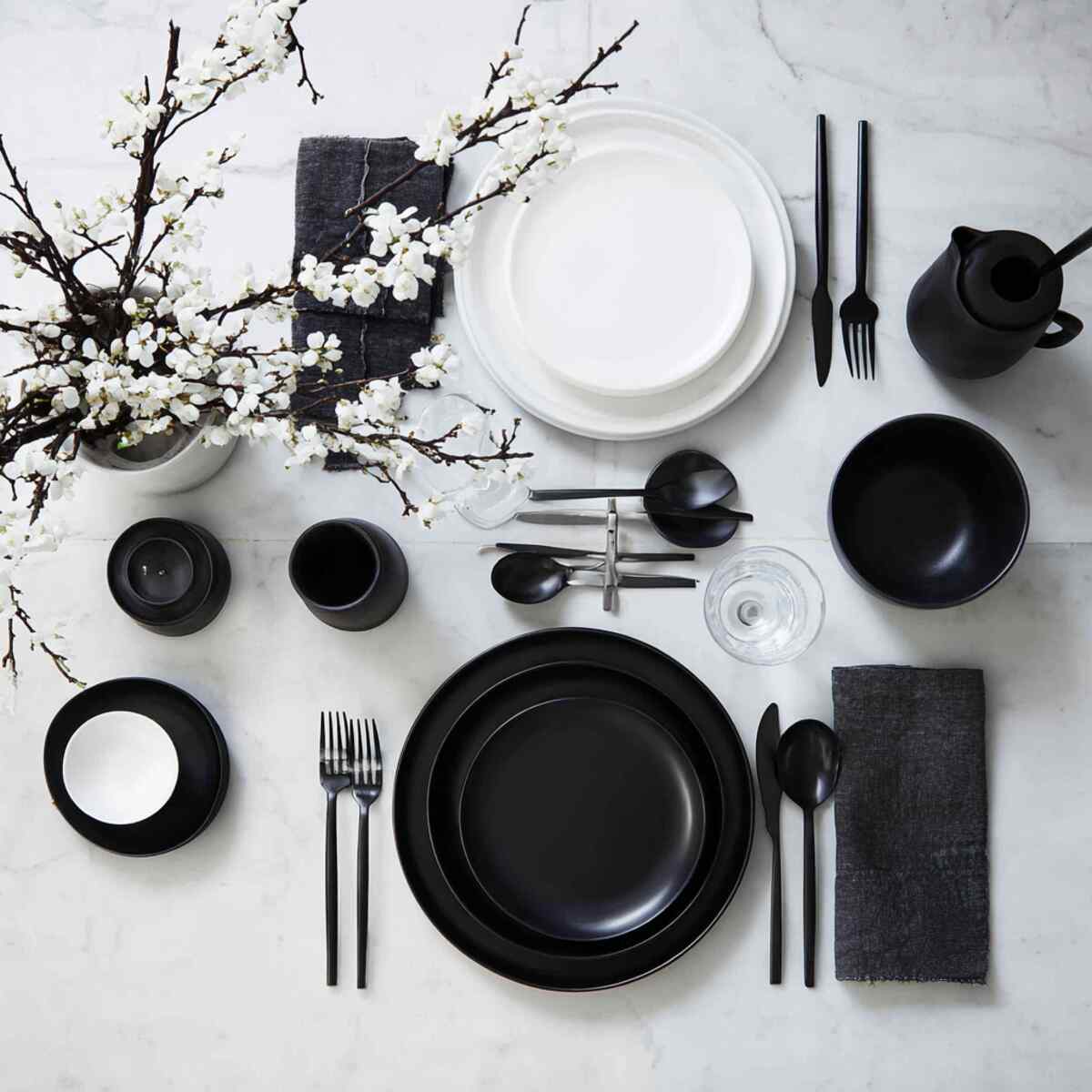 A monochrome table setting in either all white or all black creates an effortlessly bold statement.