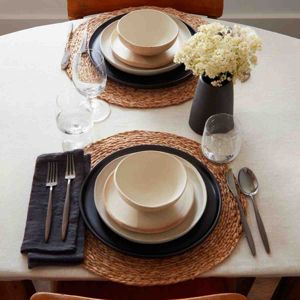 These Minimalist Table Setting Ideas keep everything organized while adding a gentle shape to the table. The placemats define each dining space without distracting from the overall minimalist theme.